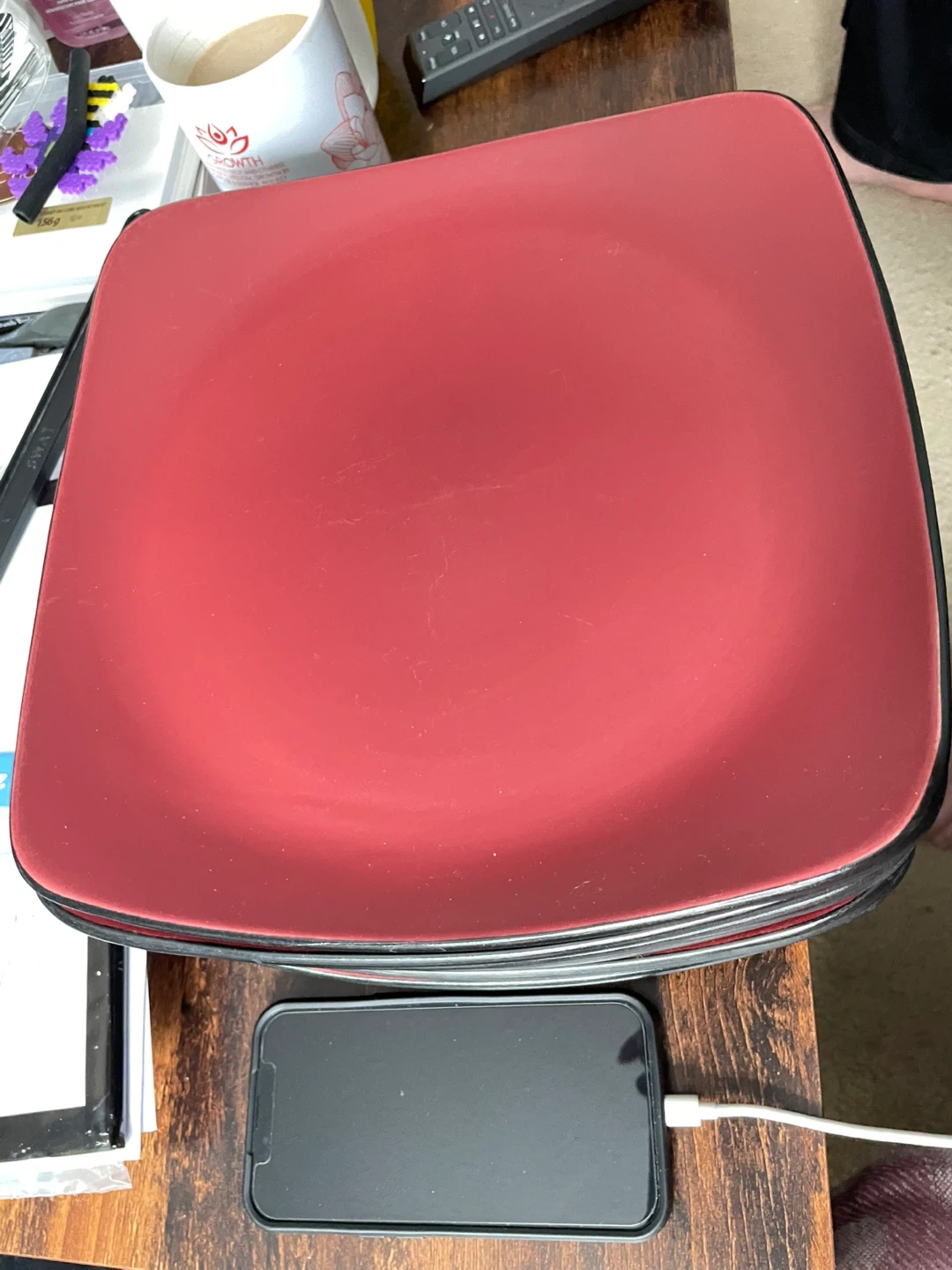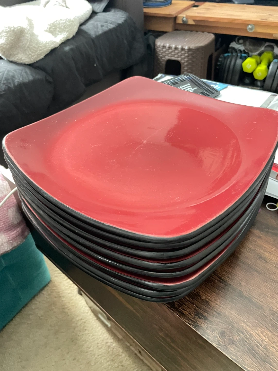 Set of 8 Red Square Dinner Plates