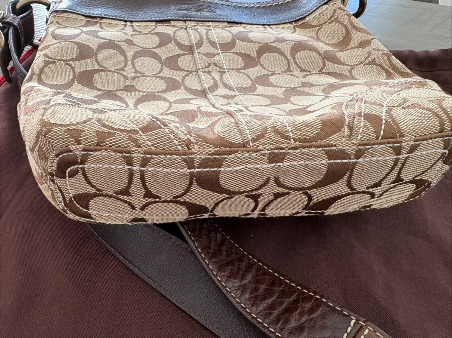 Selling a gently used Coach hobo bag! It features the classic Coach signature pattern in brown tones and leather trim. Comes with the original dust bag.