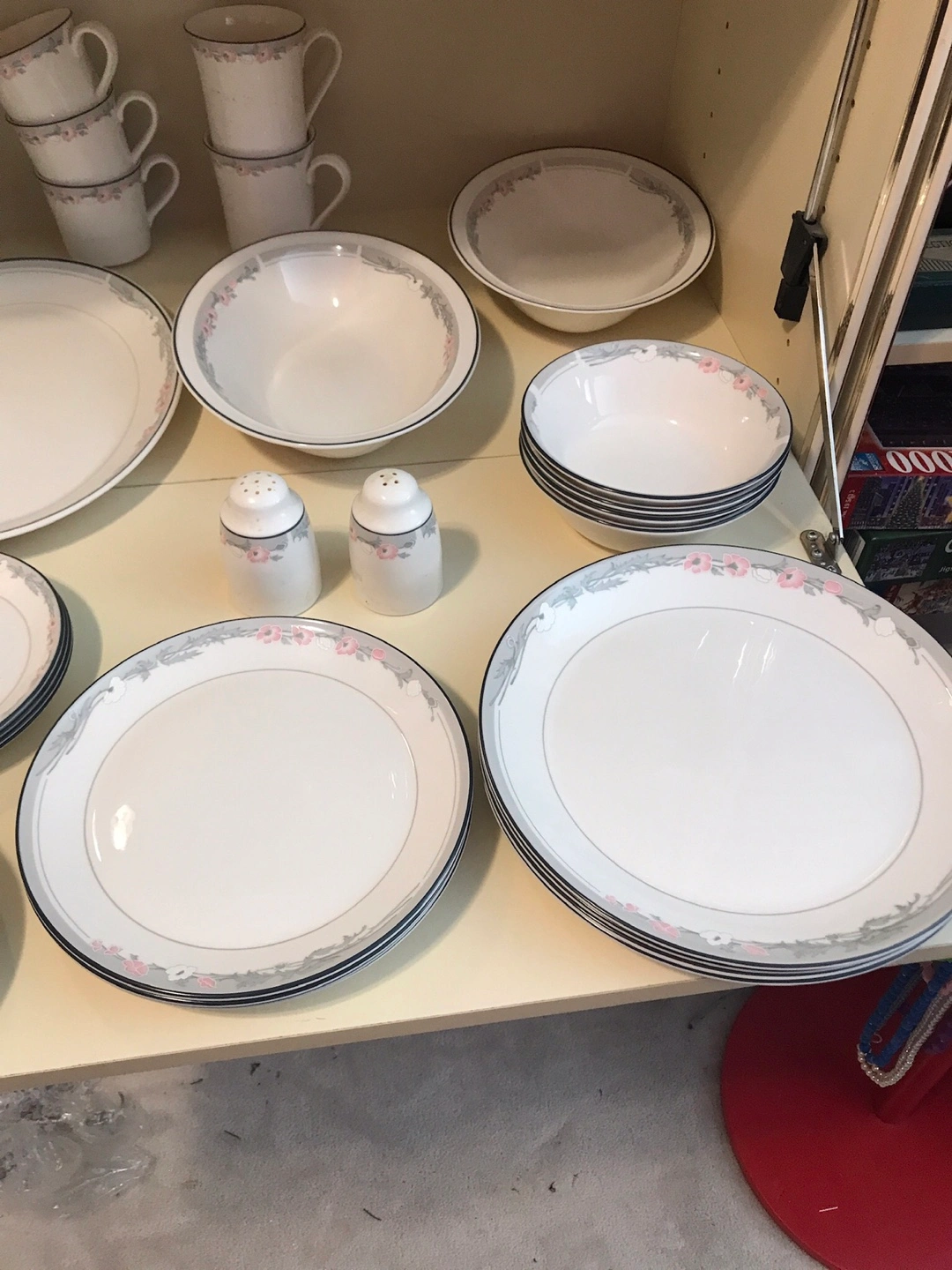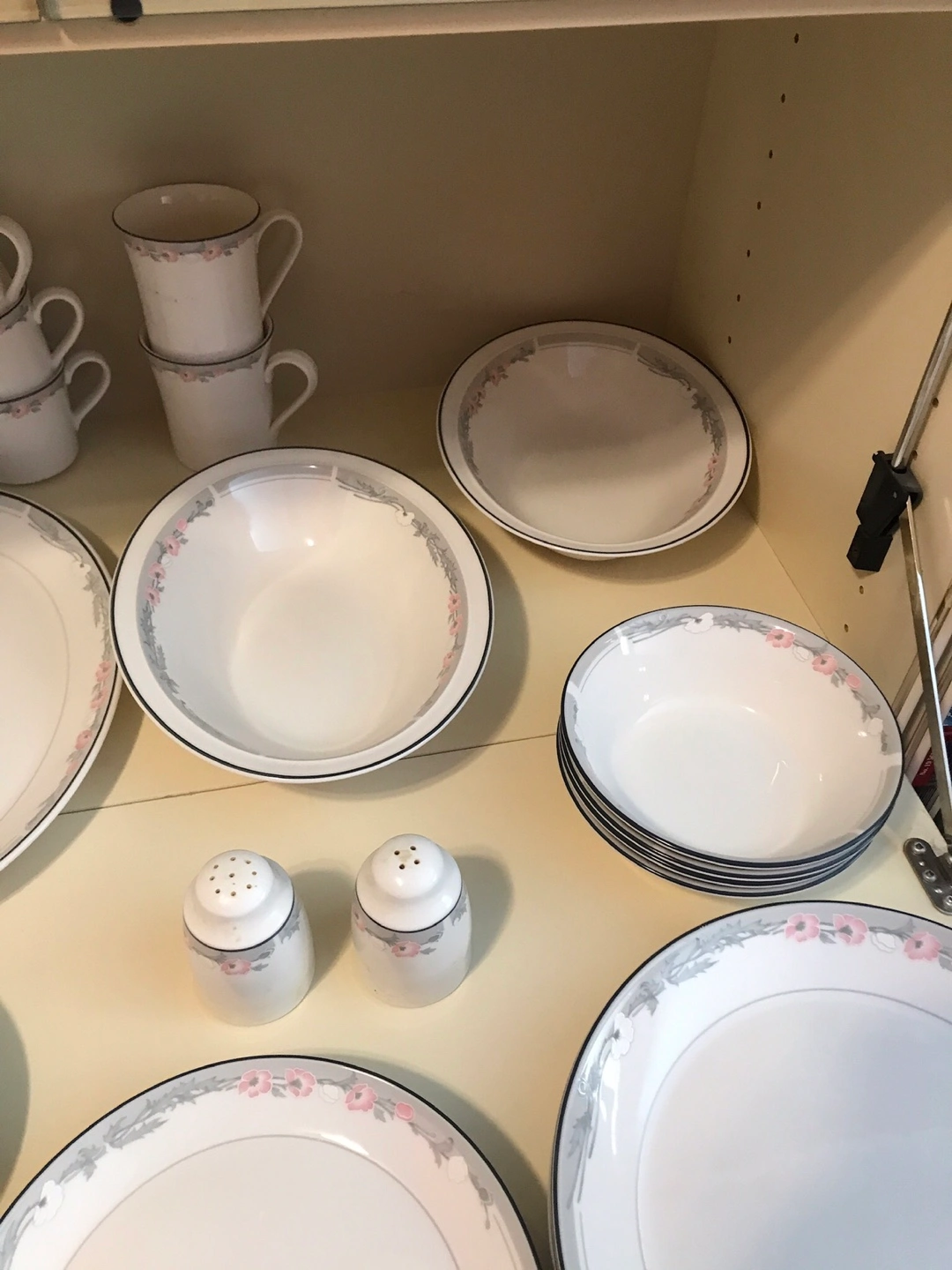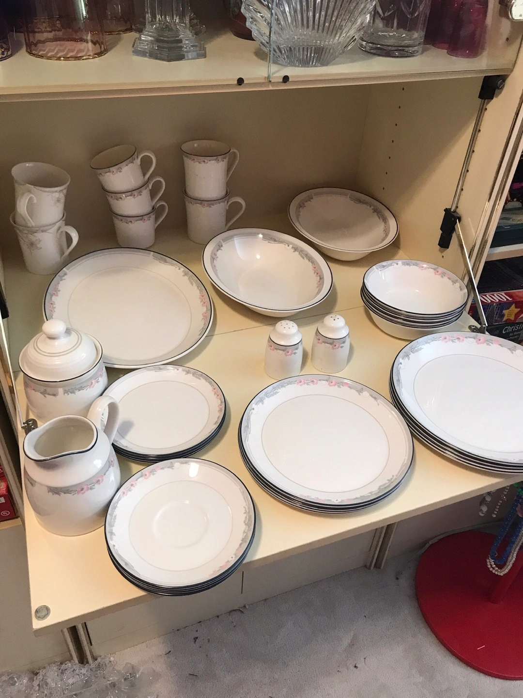 White Dinnerware Set with Pink Floral Trim