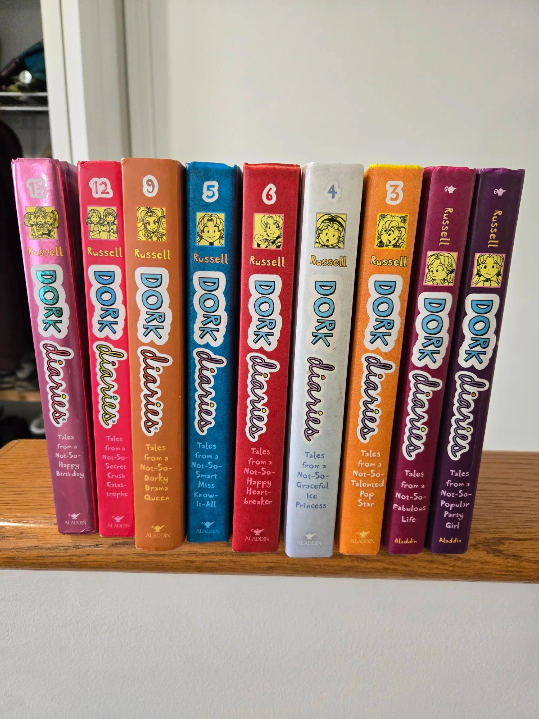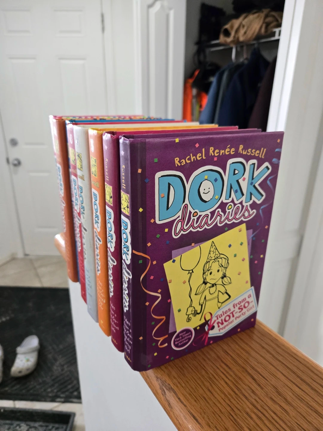 A collection of Dork Diaries books by Rachel Renee Russell. Includes multiple titles in the popular series. Great for young readers who enjoy stories about school and friendships. 9 books all together.