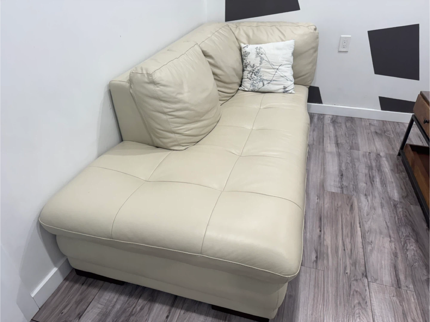 Cream Leather Chaise Lounge sofaSofa