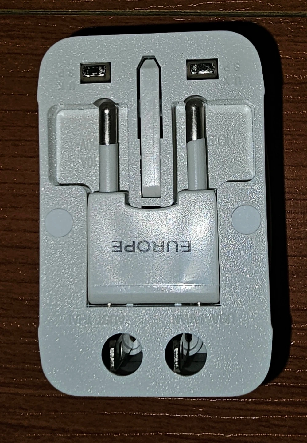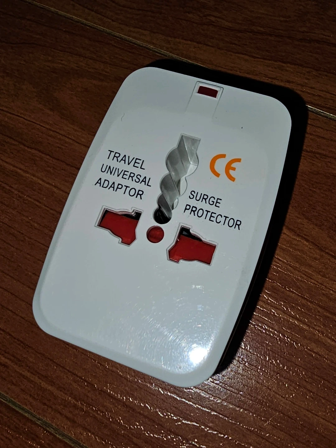 Universal travel adapter with a built-in surge protector.