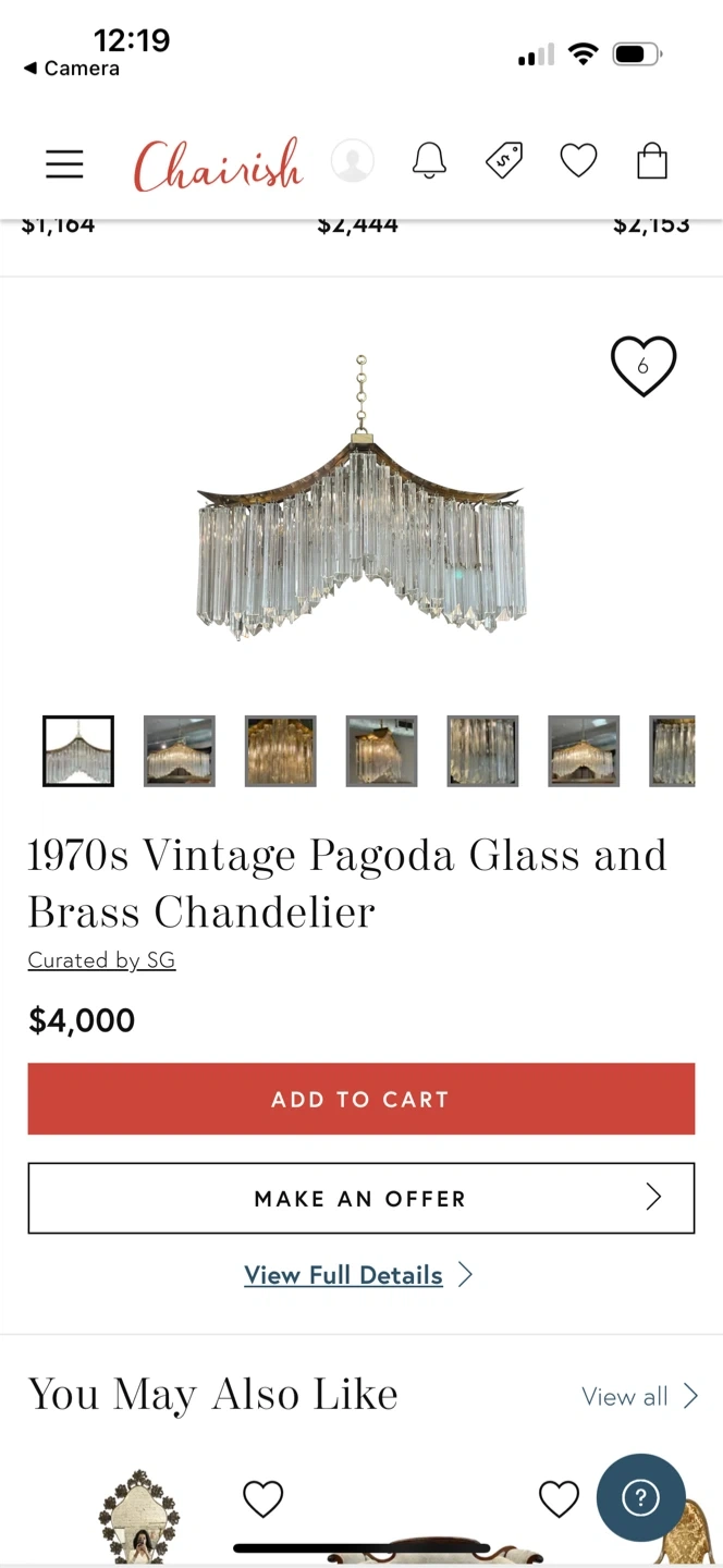 Selling a vintage 1970s Pagoda style chandelier. It features crystal rods and brass accents. One owner. Pristine condition. Same fixture online for $4,000!
