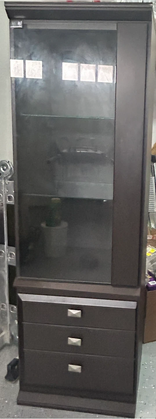 Brown Display Cabinet with Glass Door & Drawers