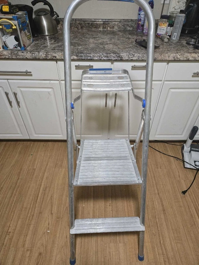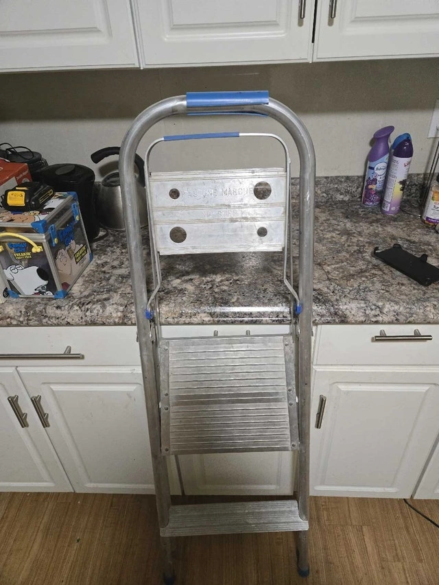 I'm selling a Reynolds aluminum 3-step ladder, perfect for household tasks. This sturdy, lightweight ladder is in used condition, but still very reliable. Here are some details: