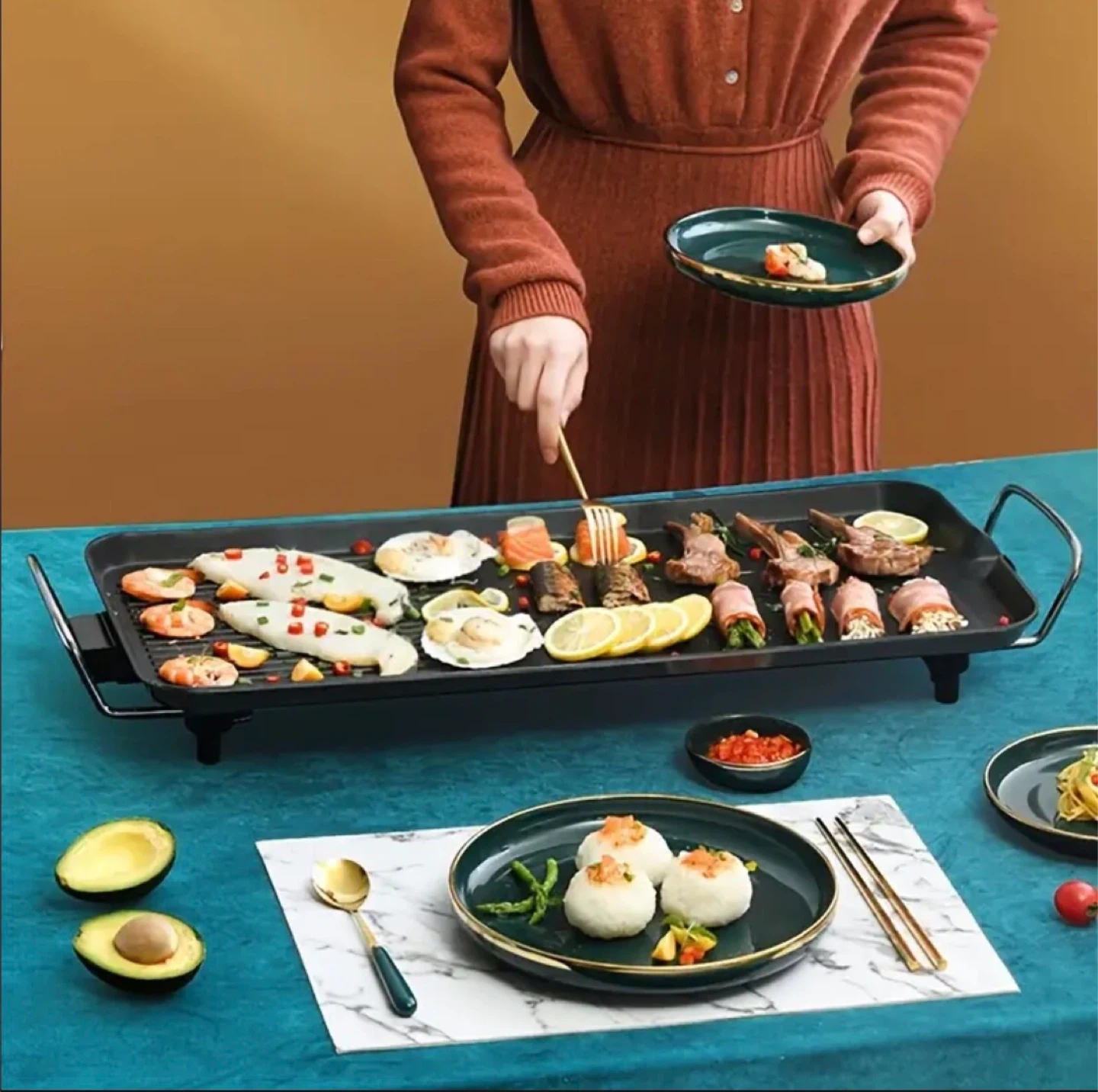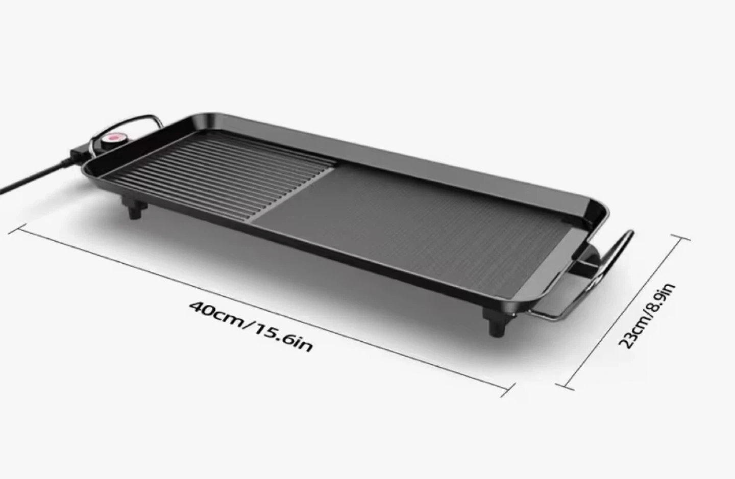 Electric Grill Non Stick Practical Multifunctional Stove Top Flat Griddle with Original Flavor for Indoor BBQ Hotpot Cooking (US Plug 100-240V 110V)