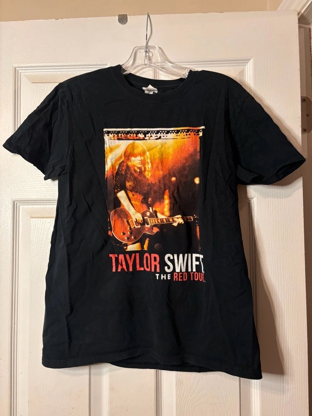 Black graphic T-shirt featuring Taylor Swift – The Red Tour design.