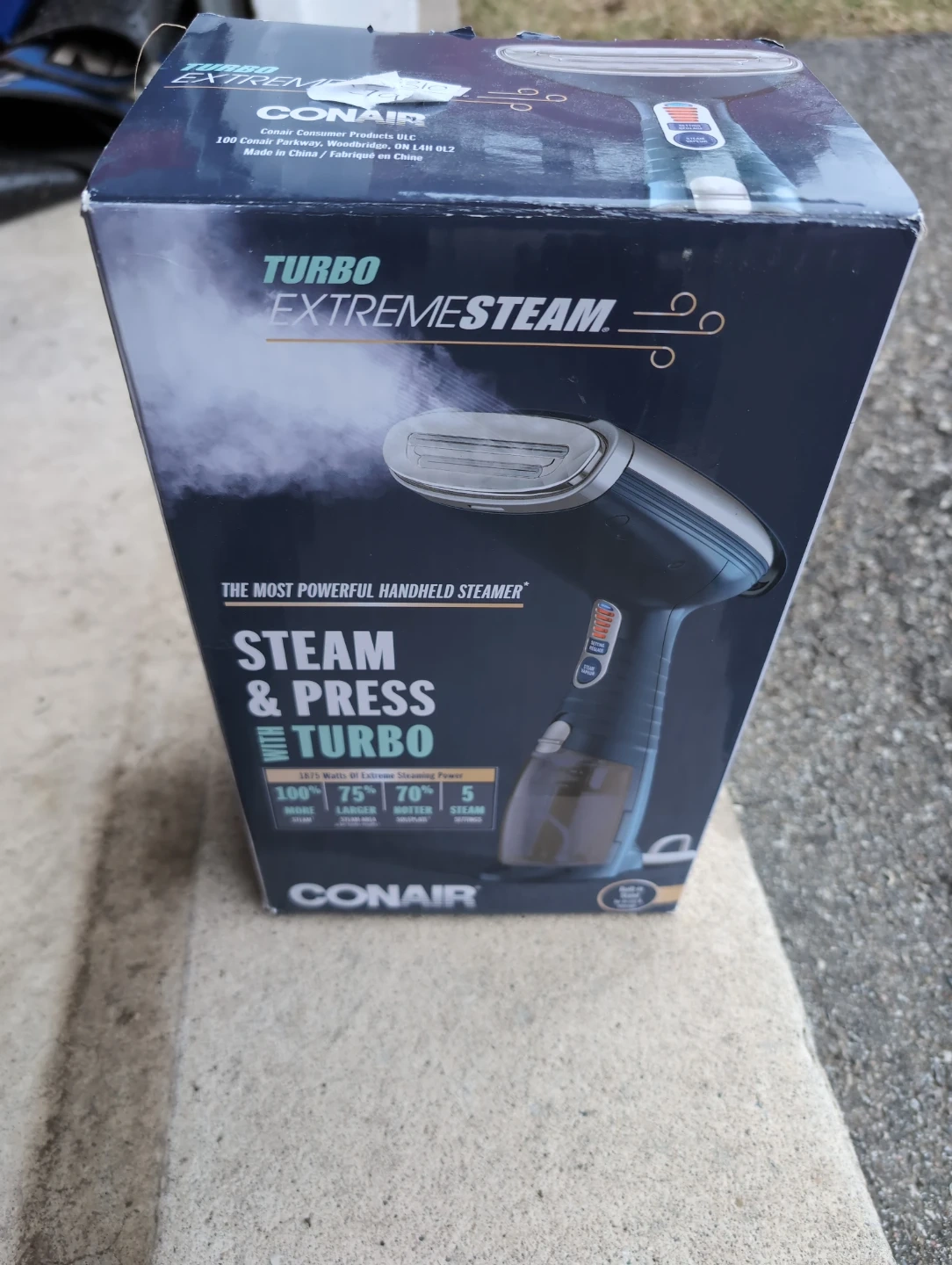 This Conair Turbo ExtremeSteam handheld steamer boasts 1875 watts of extreme steaming power. It's designed for steam and press with turbo functionality. Great for quickly refreshing clothes.