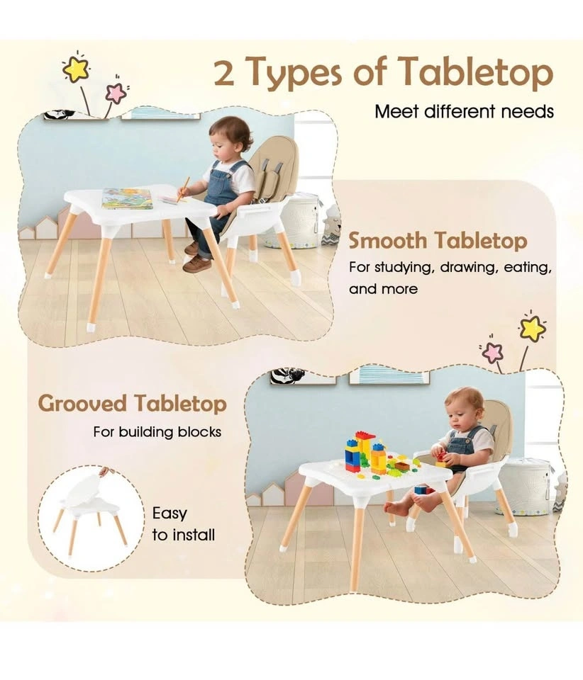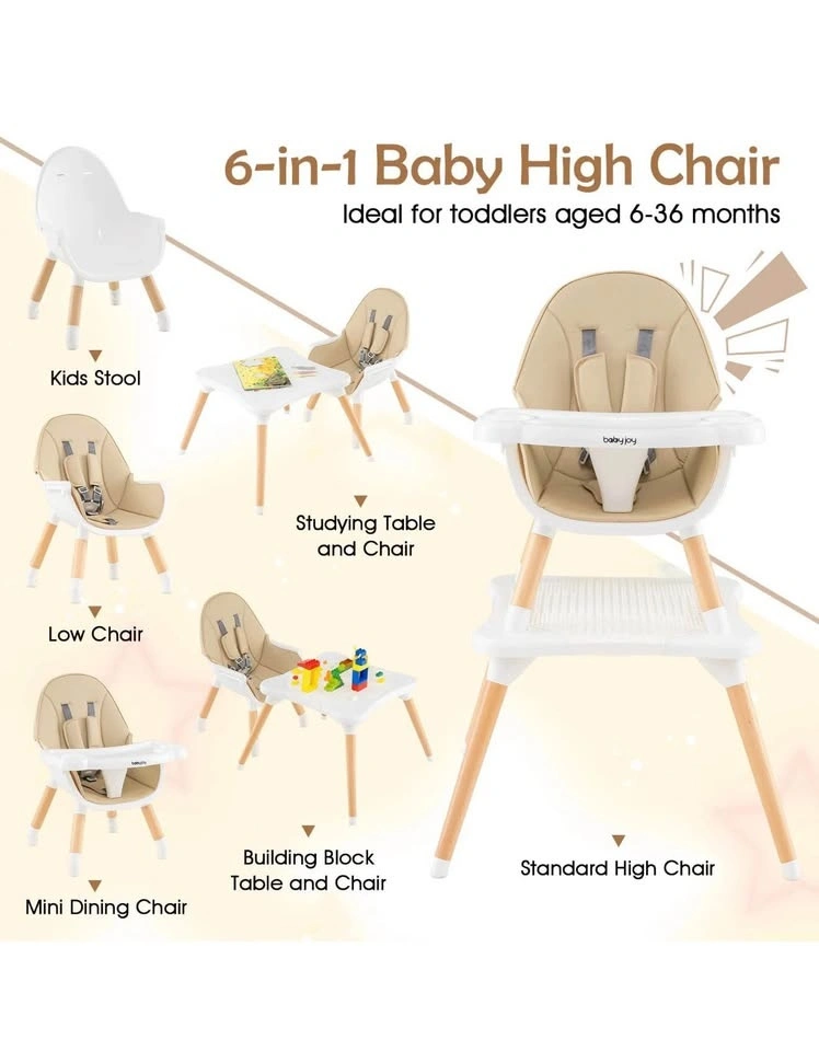 Brand new 6-in-1 Multifunctional Baby High Chair. It can be transformed into 6 useful configurations, such as a low chair, mini dining chair, stool, learning set, and play table, making it ideal for every stage of your child's development.