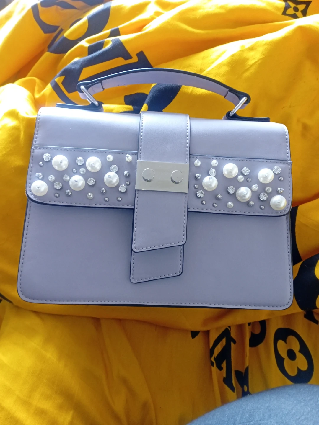 Call It Spring Lilac shoulder bag with pearls and rhinestones