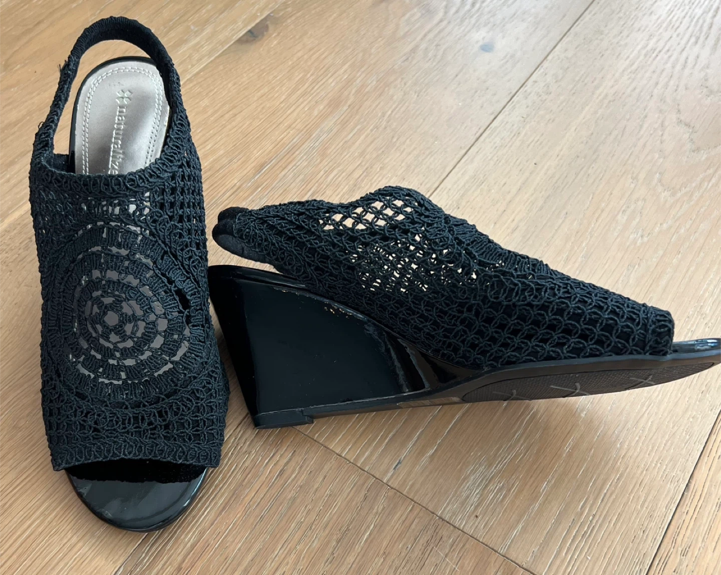 These stylish shoes feature a comfortable wedge heel and a unique crocheted design, perfect for adding a touch of elegance to any outfit. The shoes are in new condition and never been worn