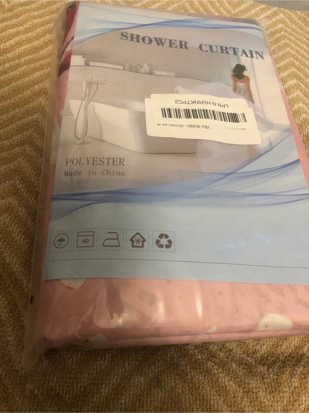 Brand new shower curtain still in its original packaging! It features a lovely pink floral pattern and comes with the necessary rings for easy installation. Made of polyester, it's ready to brighten up your bathroom!