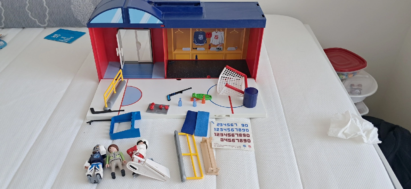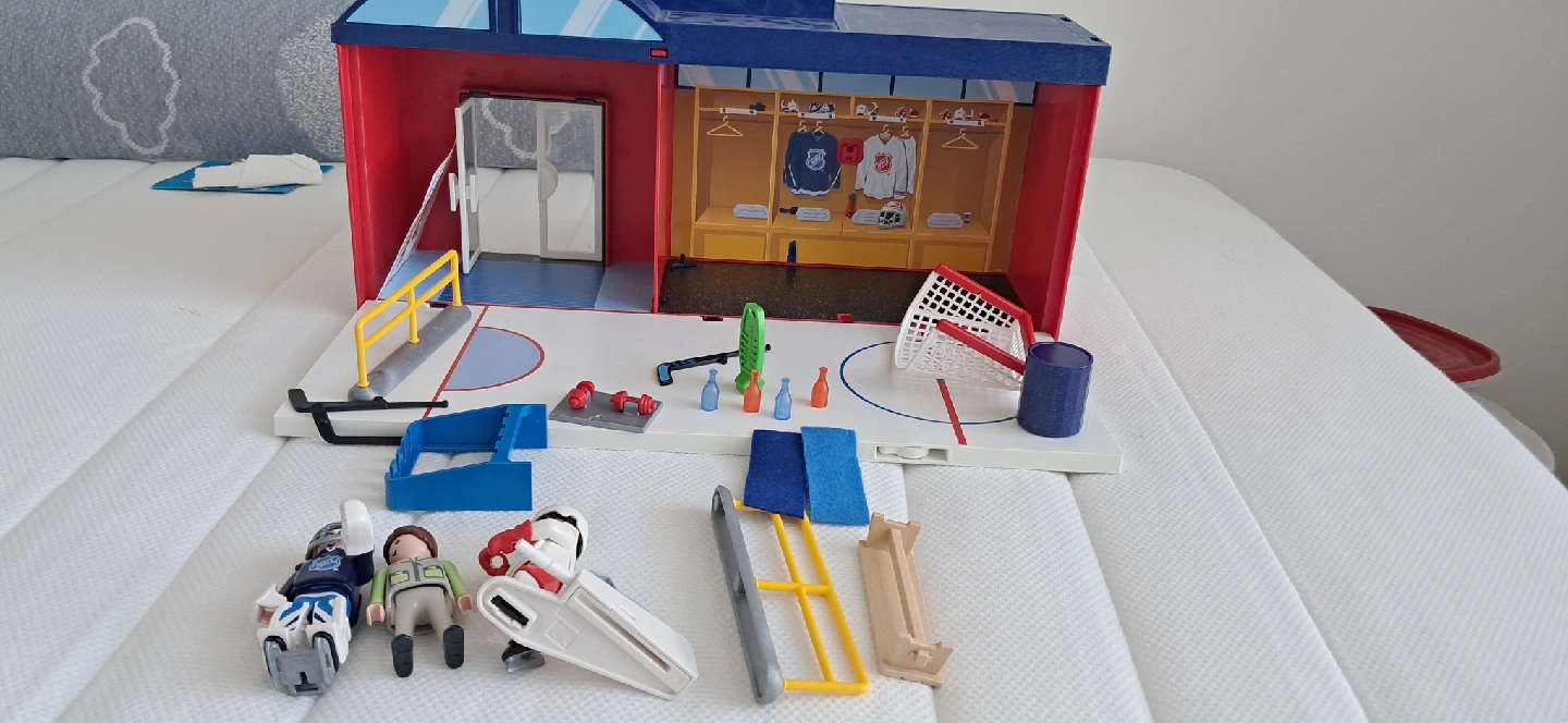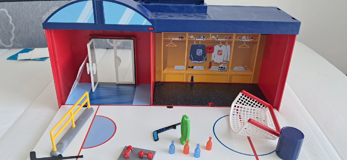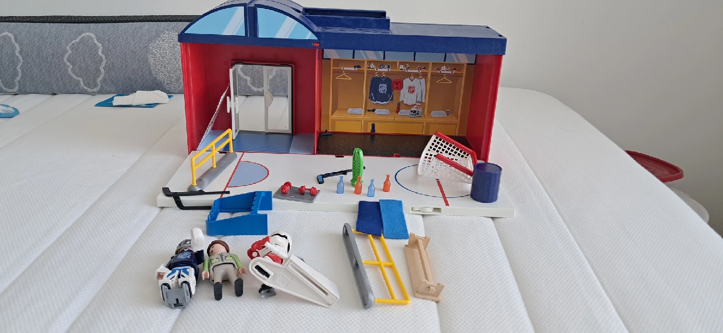 Selling Hockey Arena set! This set looks like it's in great shape and comes with lots of accessories, including figures, hockey equipment, and a locker room setup. Perfect for any young hockey fan!