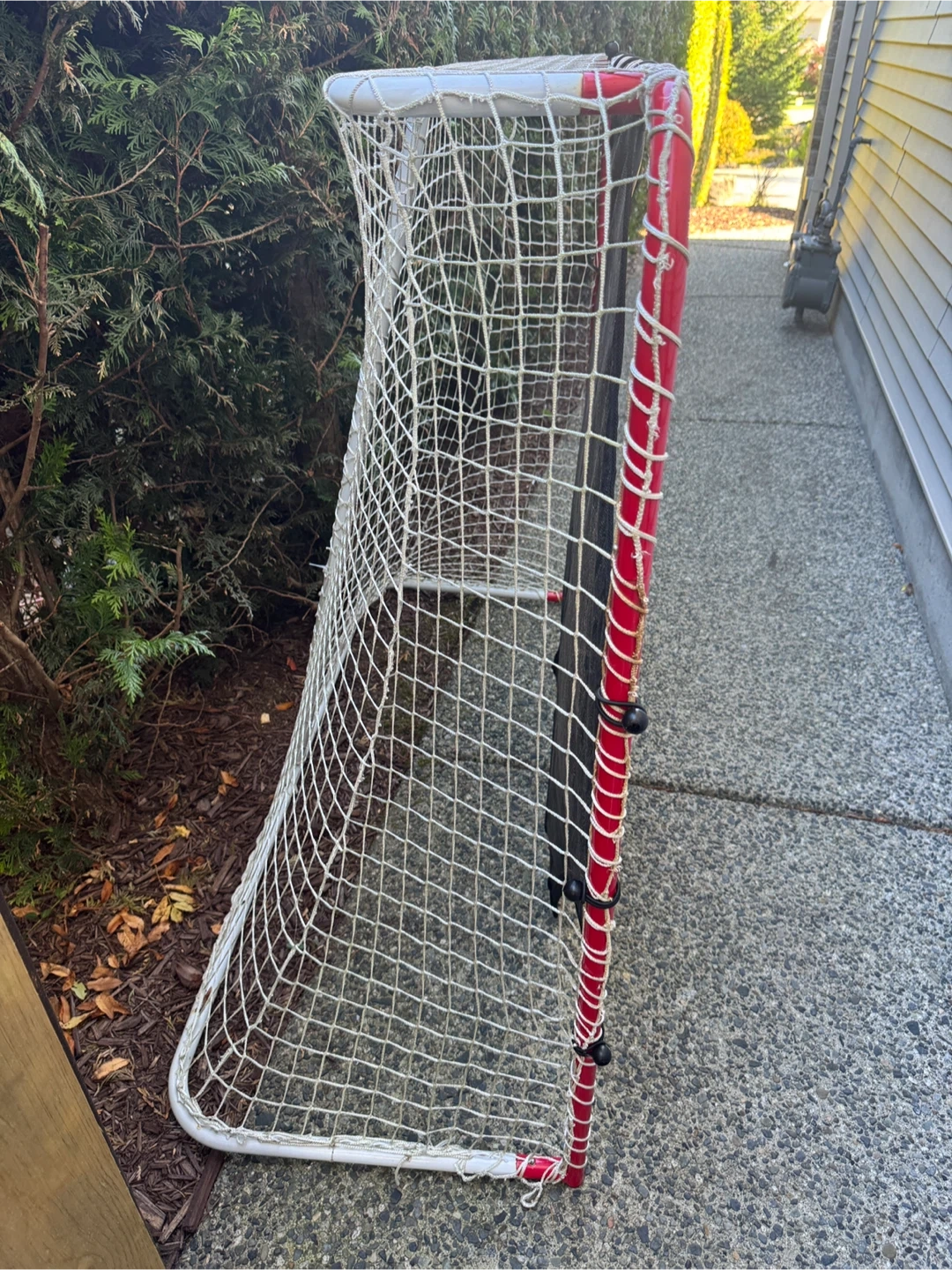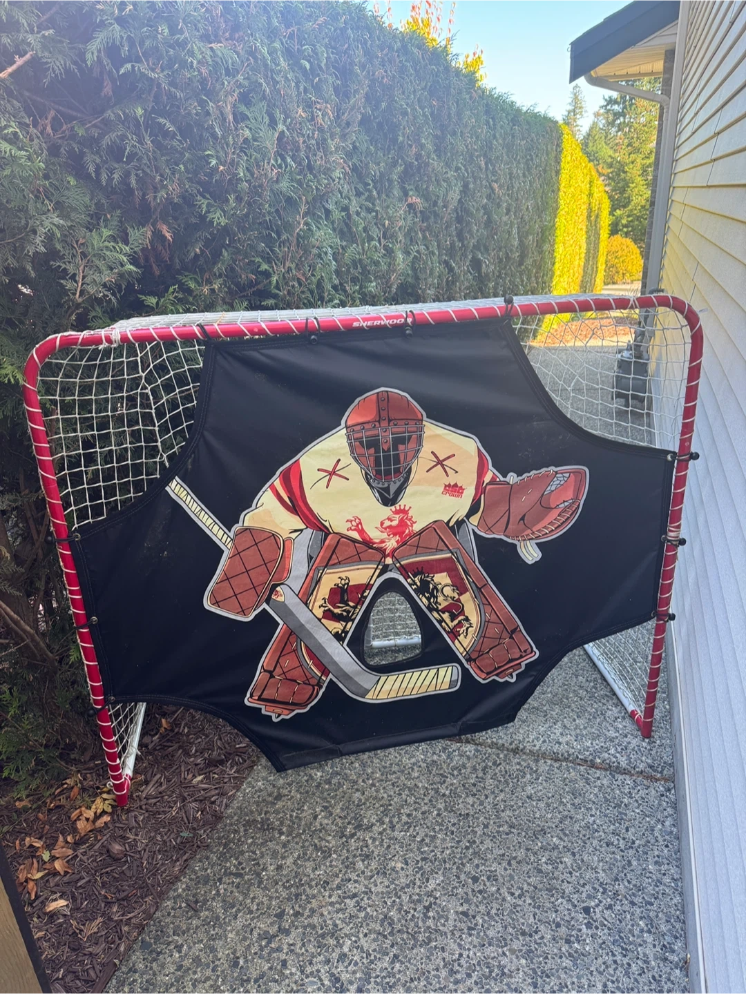 Selling a hockey net, perfect for practicing your shots! It comes with a goalie target to help improve your accuracy. Great for kids and adults alike to hone their hockey skills in the backyard or driveway
