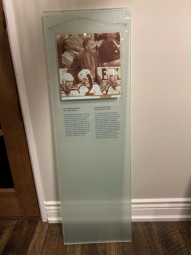 156This is a unique Joel Quenneville St. Louis Blues hockey plaque, a must-have for any hockey fan or sports memorabilia collector. This plaque commemorates Quenneville's time with the Blues. It is in good condition. Imagine this piece adding character to your man cave or sports-themed room!