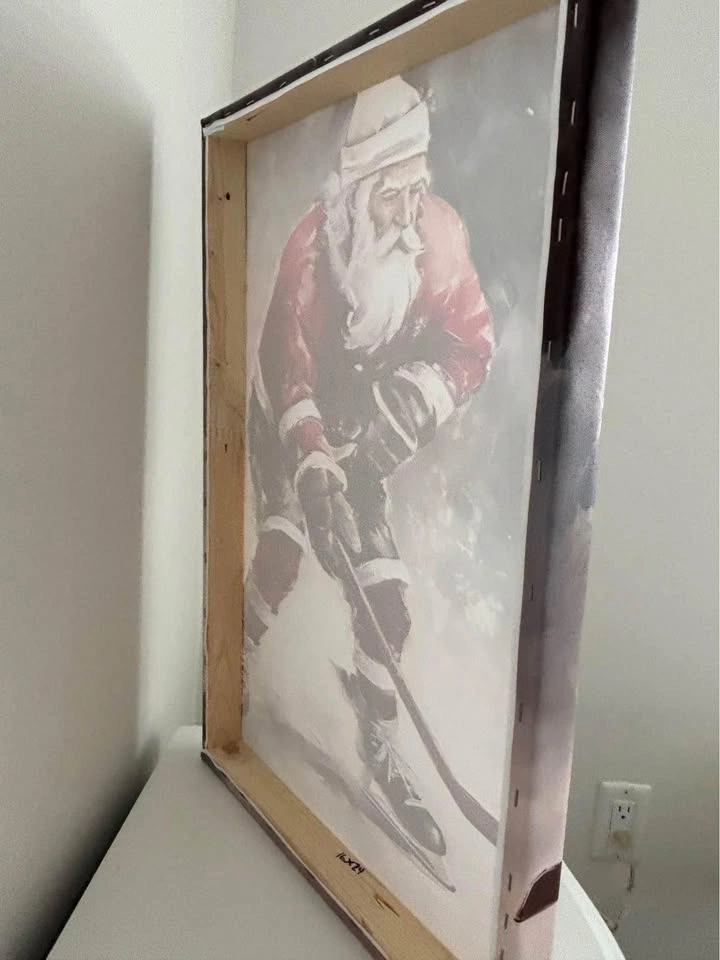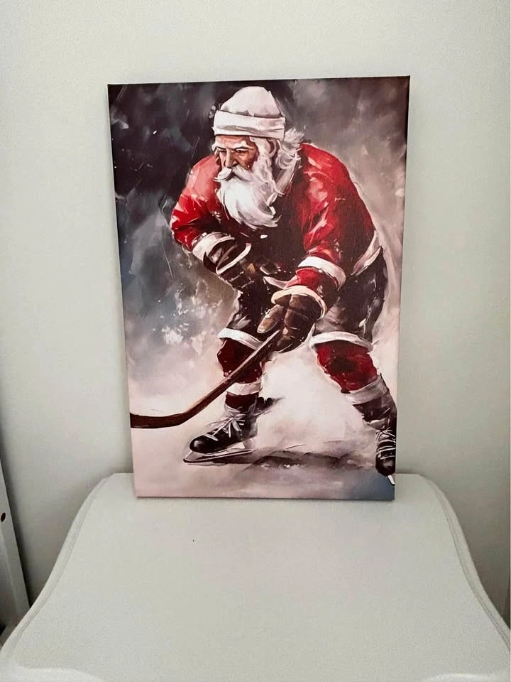 10Christmas Hockey Santa canvas. 20”x16”x1.5”. Porch pick up, Bowmanville, Northglen/Middle are area. Fastest pickup. Check out my other ads!