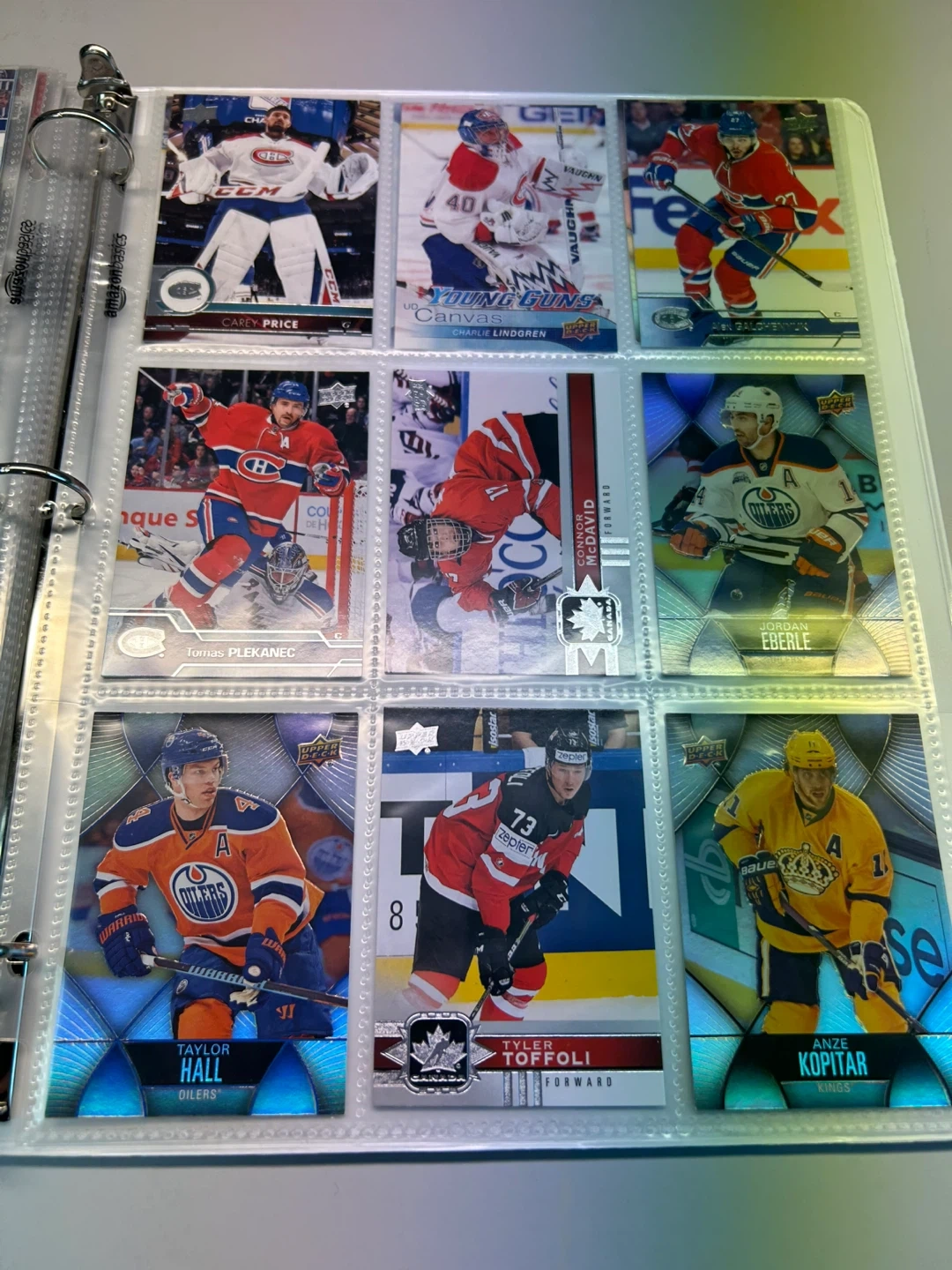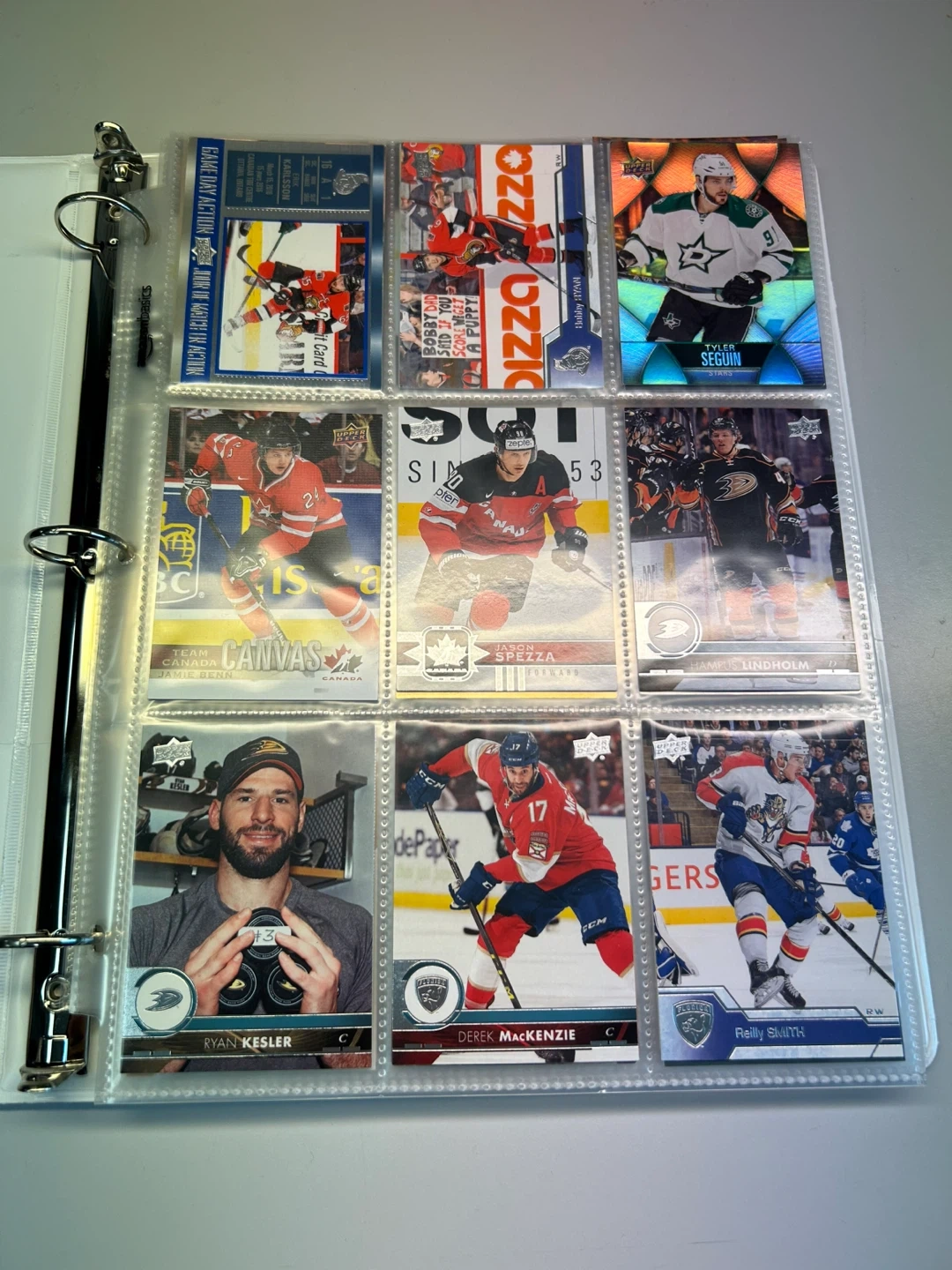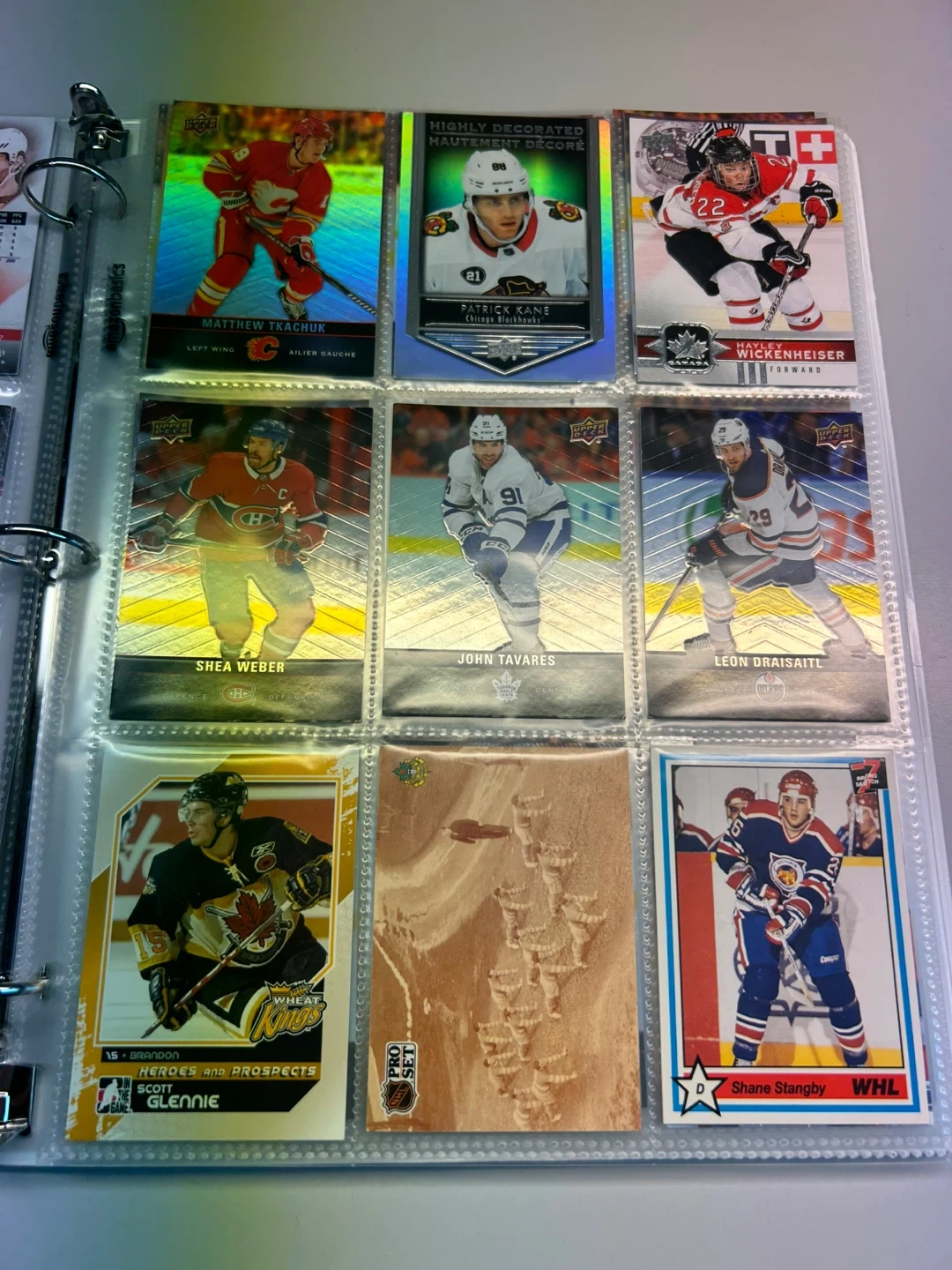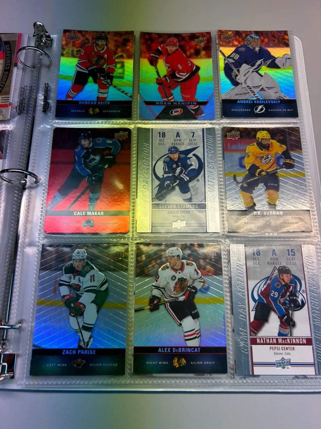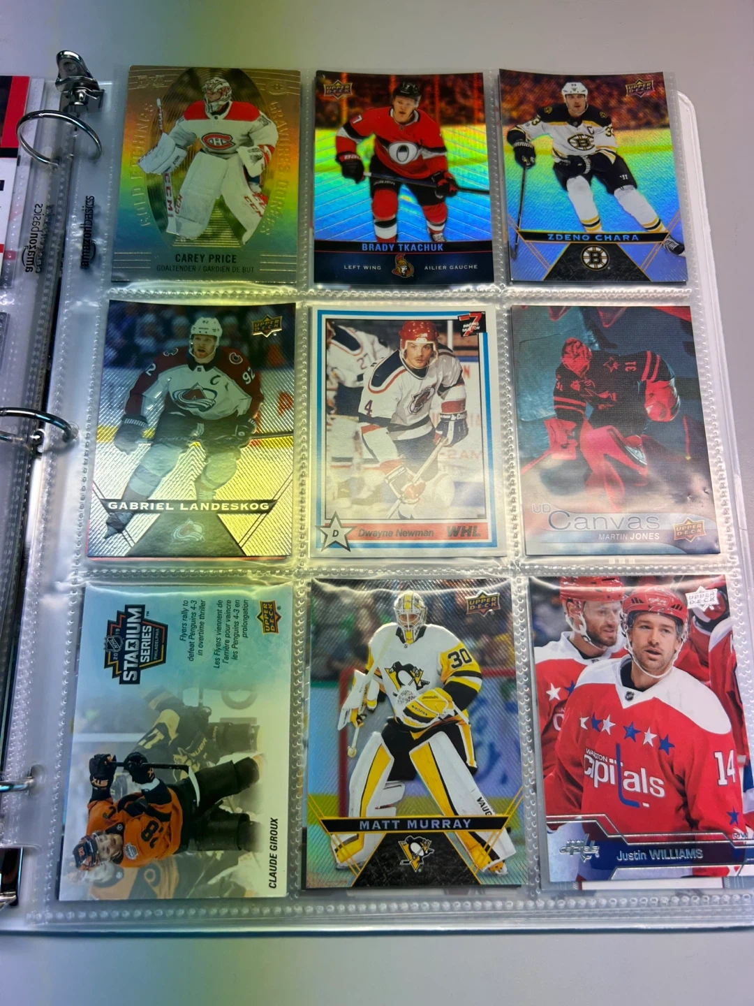 Selling a collection of hockey trading cards featuring players from various teams and series Tim’s cards $100 for the whole lot