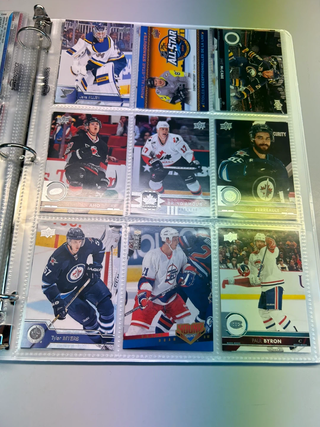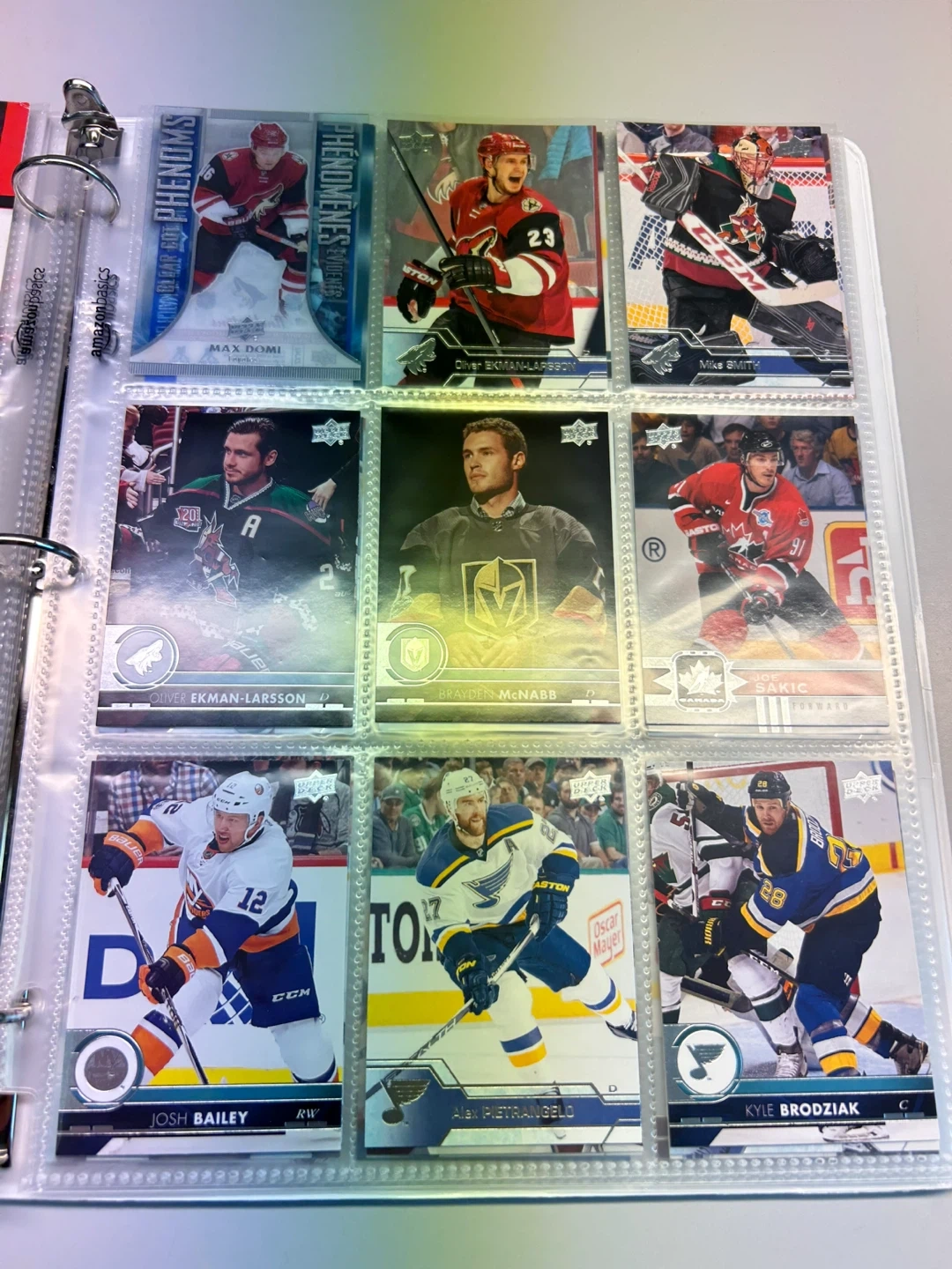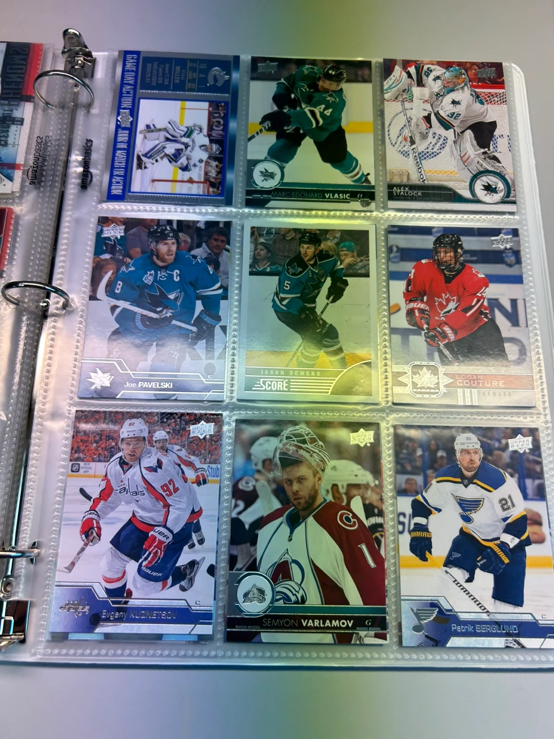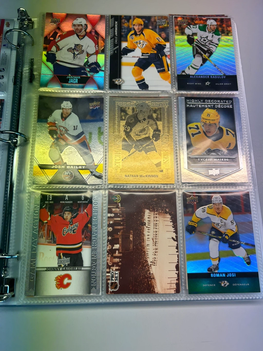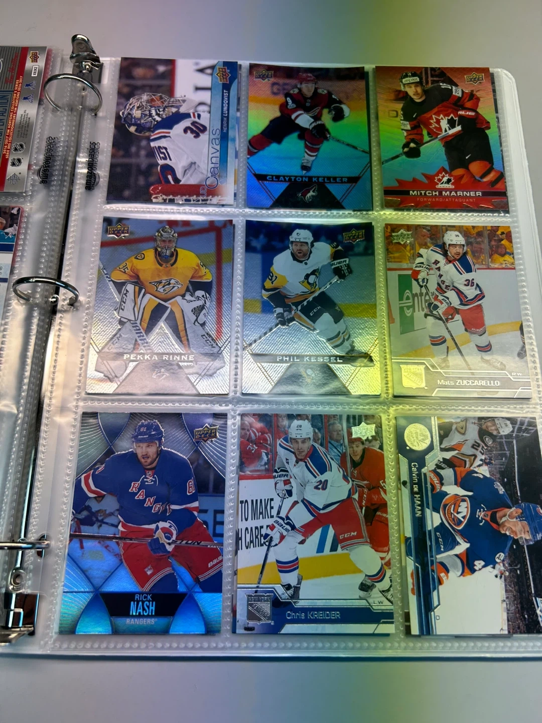 Selling a collection of hockey trading cards featuring players from various teams and series Tim’s cards $100 for the whole lot