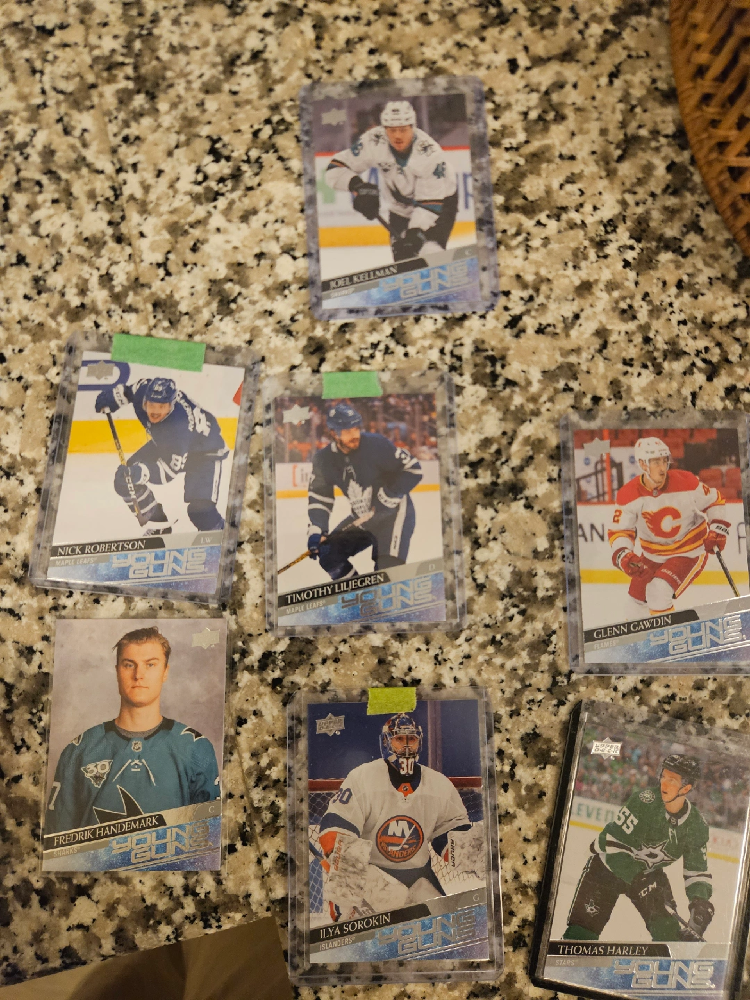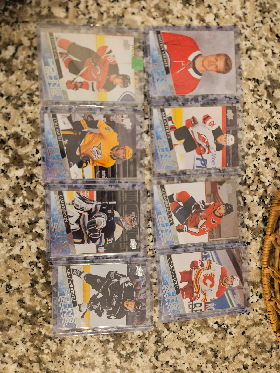 Selling a collection of Upper Deck Young Guns and Rookie hockey cards! Great for any hockey fan or collector looking to add to their collection. Each card is in a protective sleeve. Each card varies but will do a deal with you need bundles done