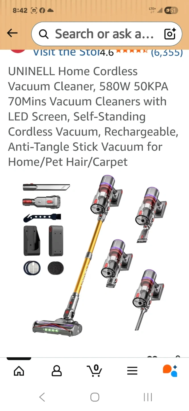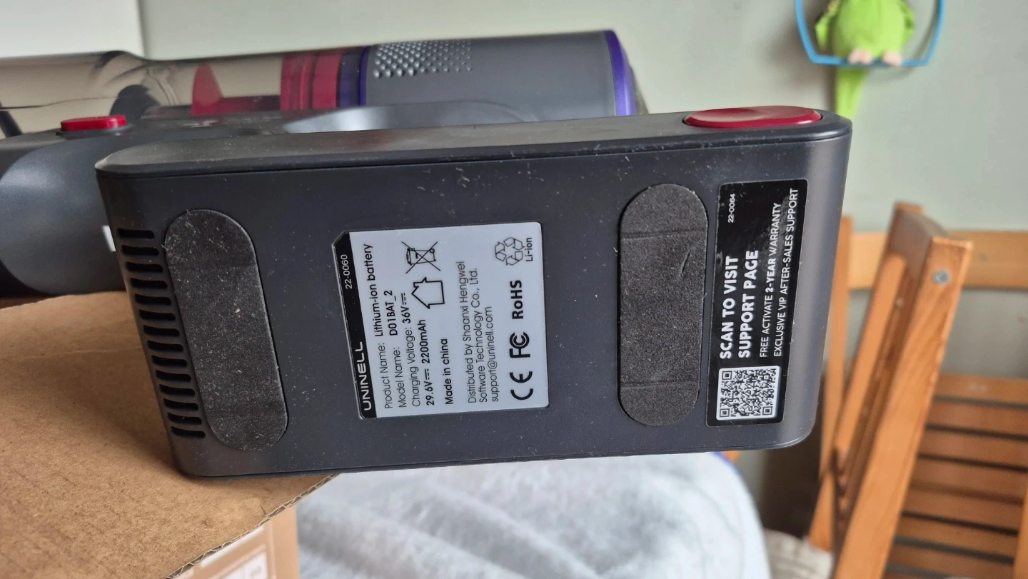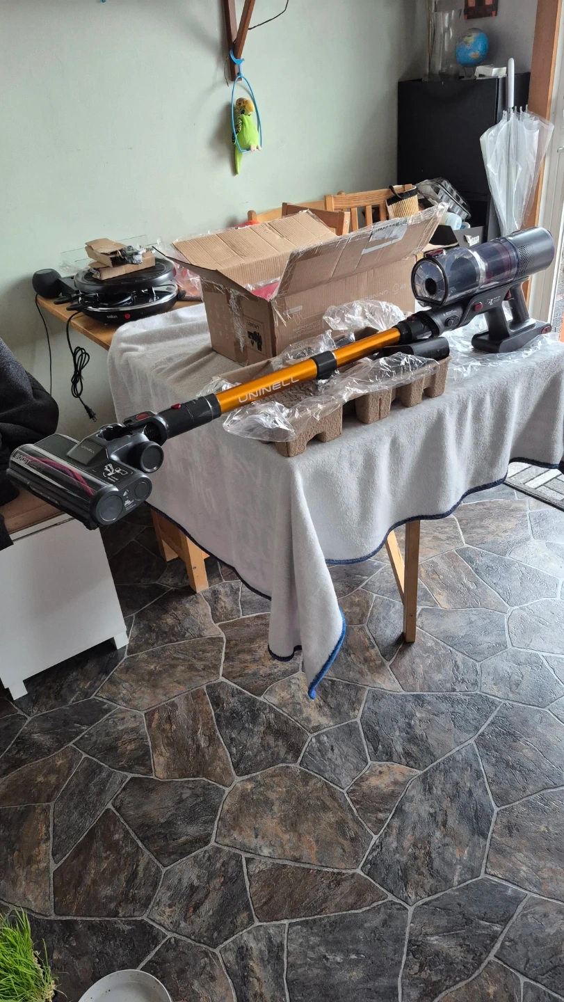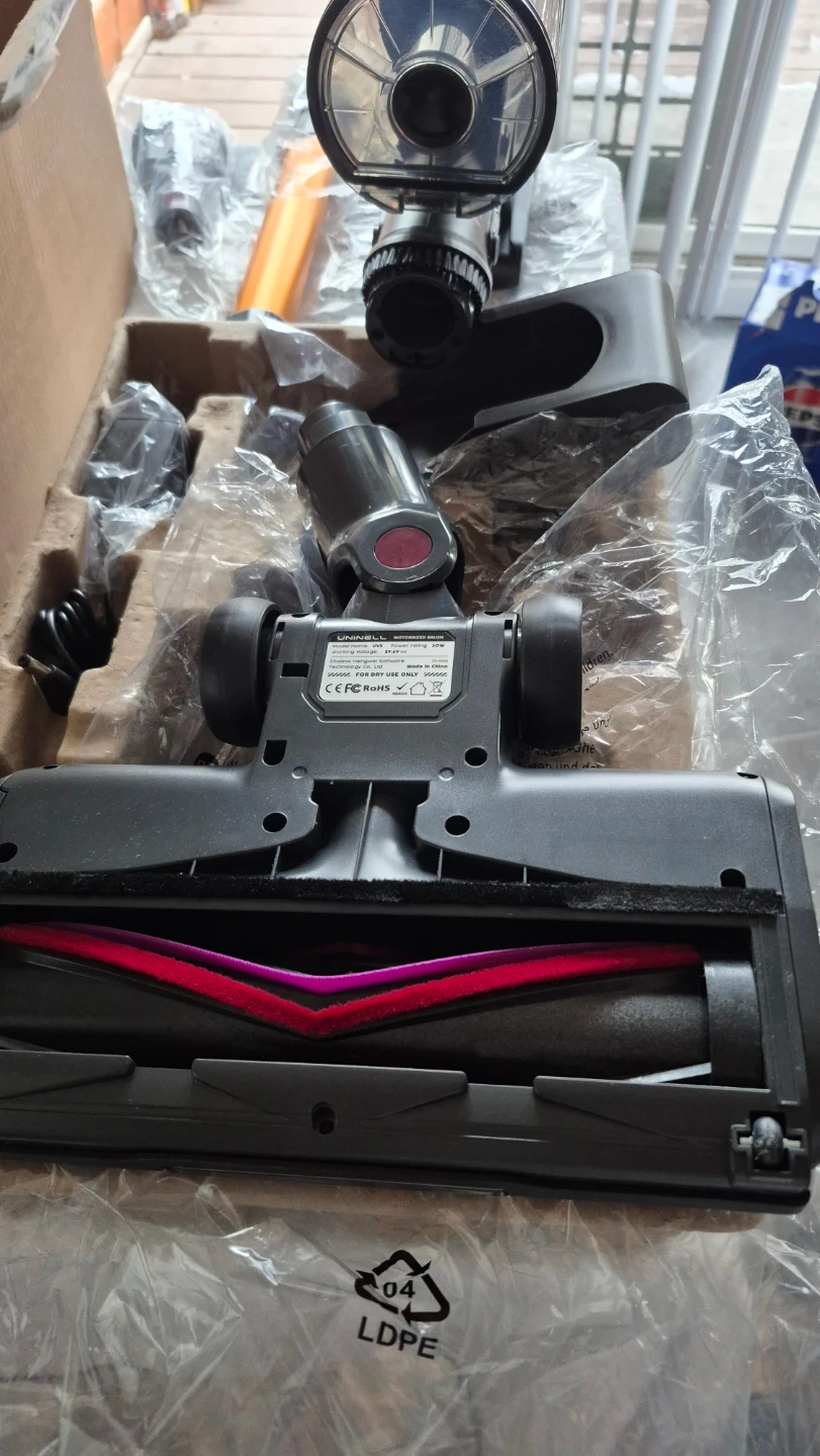 This UNINELL,550W Home Cordless Vacuum Cleaner turbo mode very strong, with digital touch screen, is designed for efficient cleaning. It's rechargeable and suitable for home and pet hair. Includes various attachments for different surfaces.