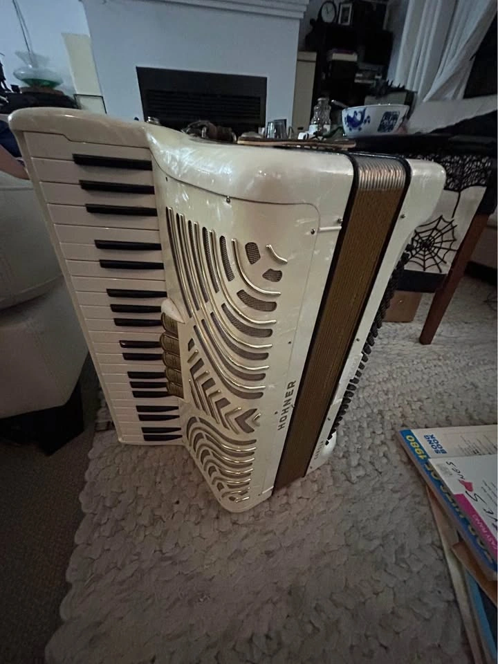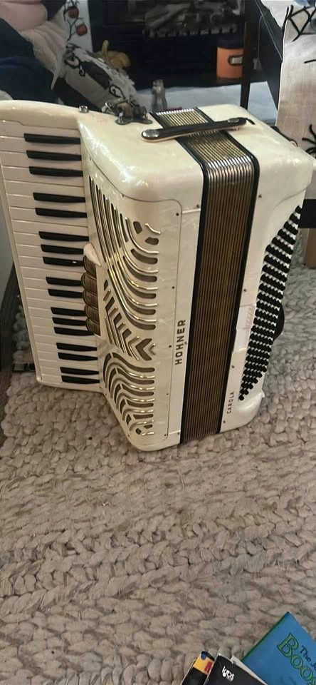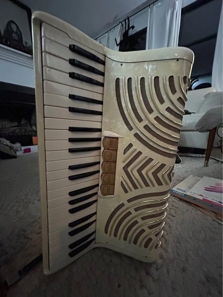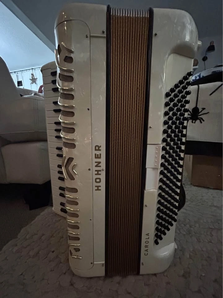 Hohner Carola accordion. It’s older, looks really cool, and it actually plays. I don’t know much about accordions so I can’t say if it’s perfectly tuned or if it has any issues. All the keys and buttons make sound, but I’m sure someone who knows these instruments could tell you more. Comes with the original hard case (pretty worn but still completely functional). I’m just putting it up at $499 or best offer. If you’re into accordions, vintage instruments, or want a neat project, this might be for you. Pickup in Saskatoon.