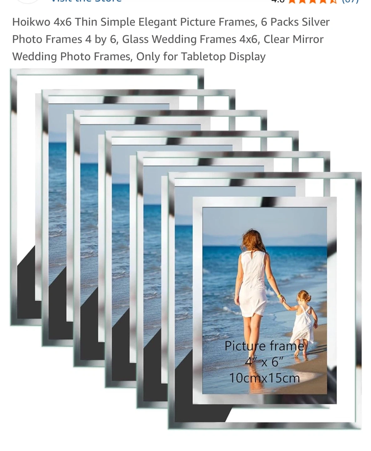 Selling a set of six Hoikwo picture frames. They are silver, thin, and elegant, perfect for displaying 4x6 inch photos. These frames are designed for tabletop display and would be lovely for wedding photos or any cherished memories