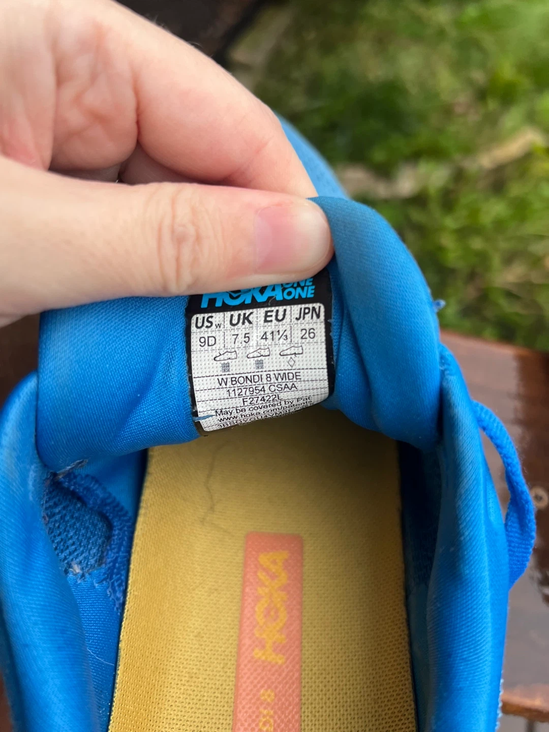 86Selling a pair of Hoka Bondi 8 Wide running shoes in women's size US 9D. They're in good condition and ready for someone who needs a comfortable and supportive shoe for running or walking!