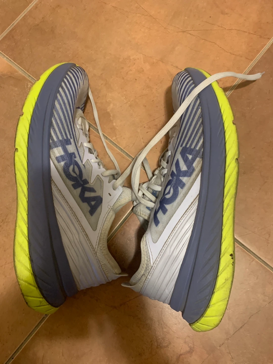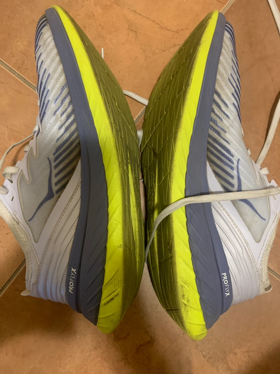 Selling a pair of Hoka One One ProFly X running shoes in US size 10. They've been used, as you can see from the soles, but still have lots of life left in them for someone who wants a comfortable and supportive running shoe