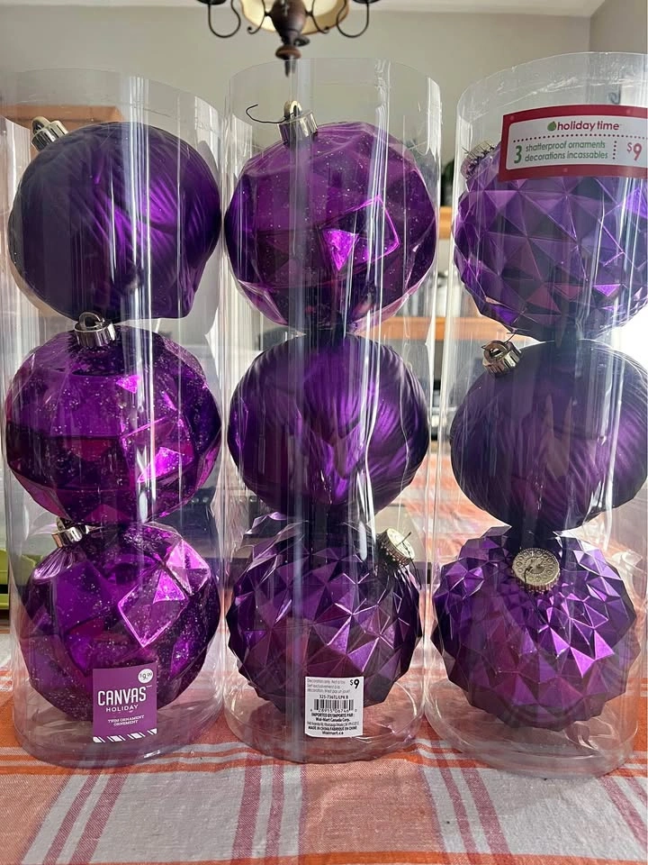 10All shades of purple. Multiples sized tree ornaments. Brand new bow, and tinsel to go with. Pickup in Courtice.