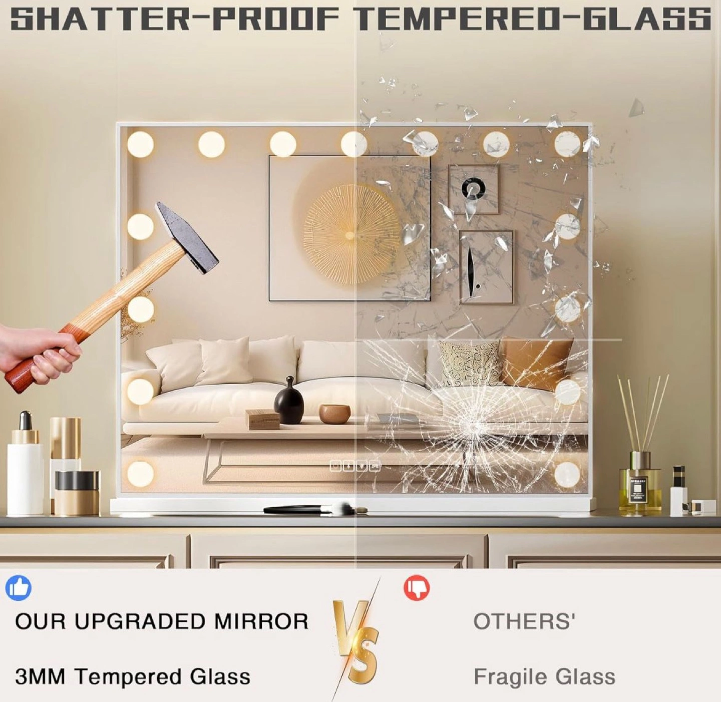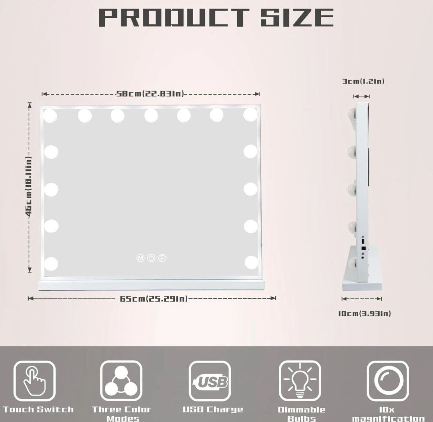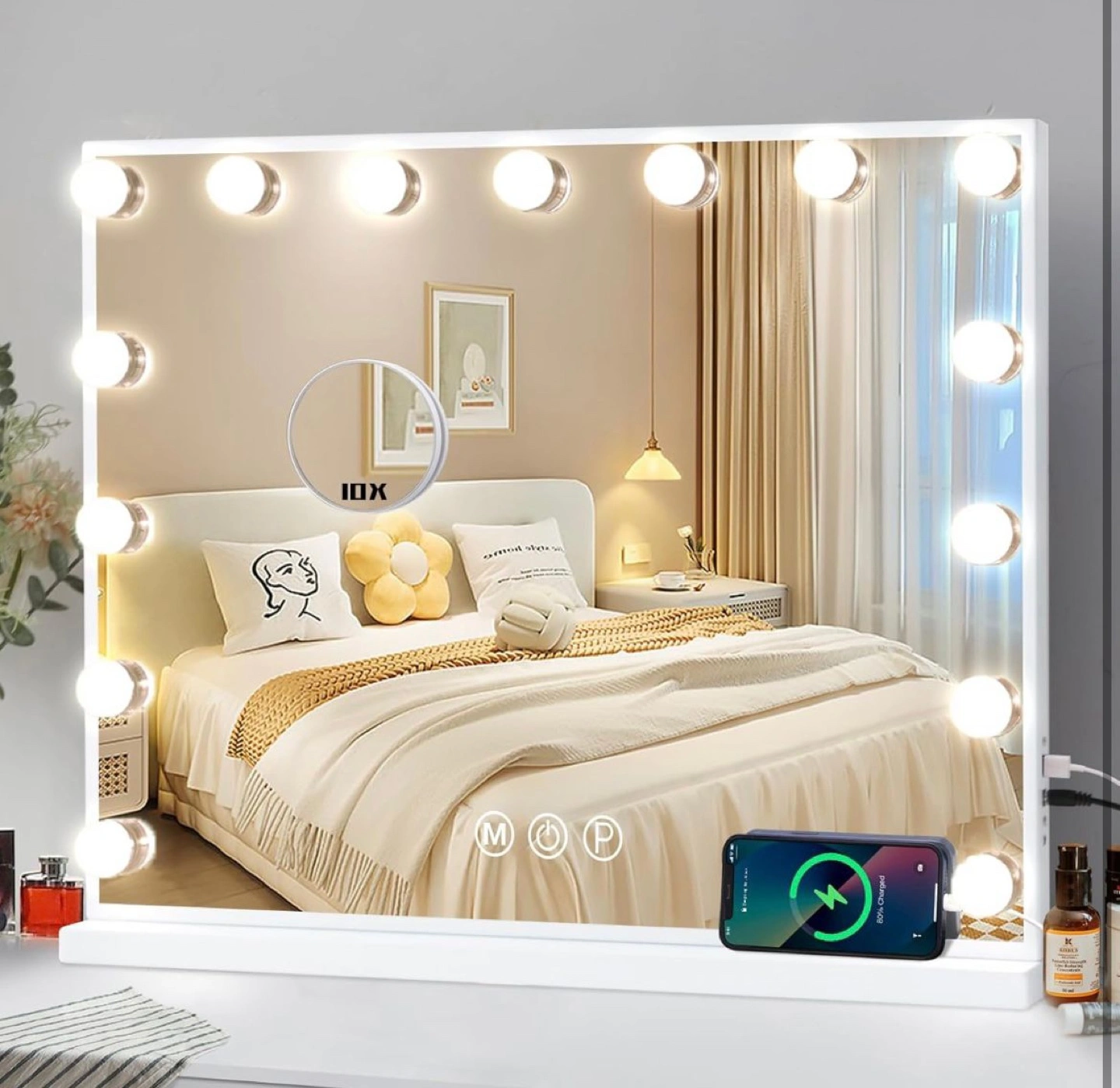 85Condition : New in Box Pick up at Lawrence Ave. & Dufferin Retails for 150$ plus taxes. https://www.amazon.ca/COOLJEEN-Hollywood-Dimmable-Charging-Lighting/dp/B0CF4F6VG3#aw-udpv3-customer-reviews_feature_div Perfect Size: 23"x18" – large enough for a full upper body view without being bulky. 3 Color Lighting Modes: Choose from warm, daylight, or cold light with adjustable brightness to match your needs; memory function saves your last setting. USB Charging Port: Conveniently charge your phone or device while you get ready. 10X Magnification & Shatterproof Glass. Includes a detachable magnifying mirror; tempered, scratch-resistant glass for safety and durability. Versatile Placement: Use on tabletop or wall-mount for flexible positioning.