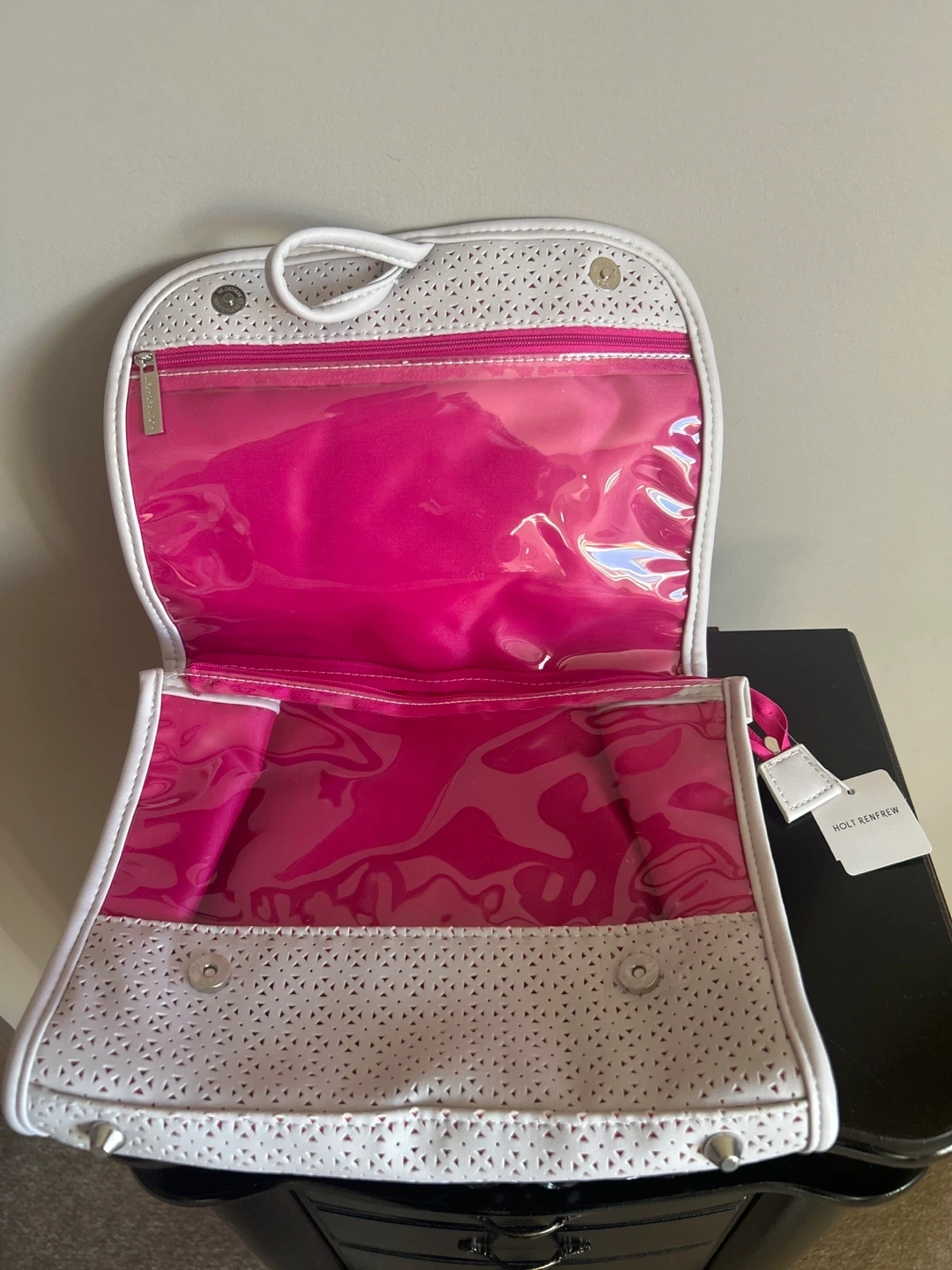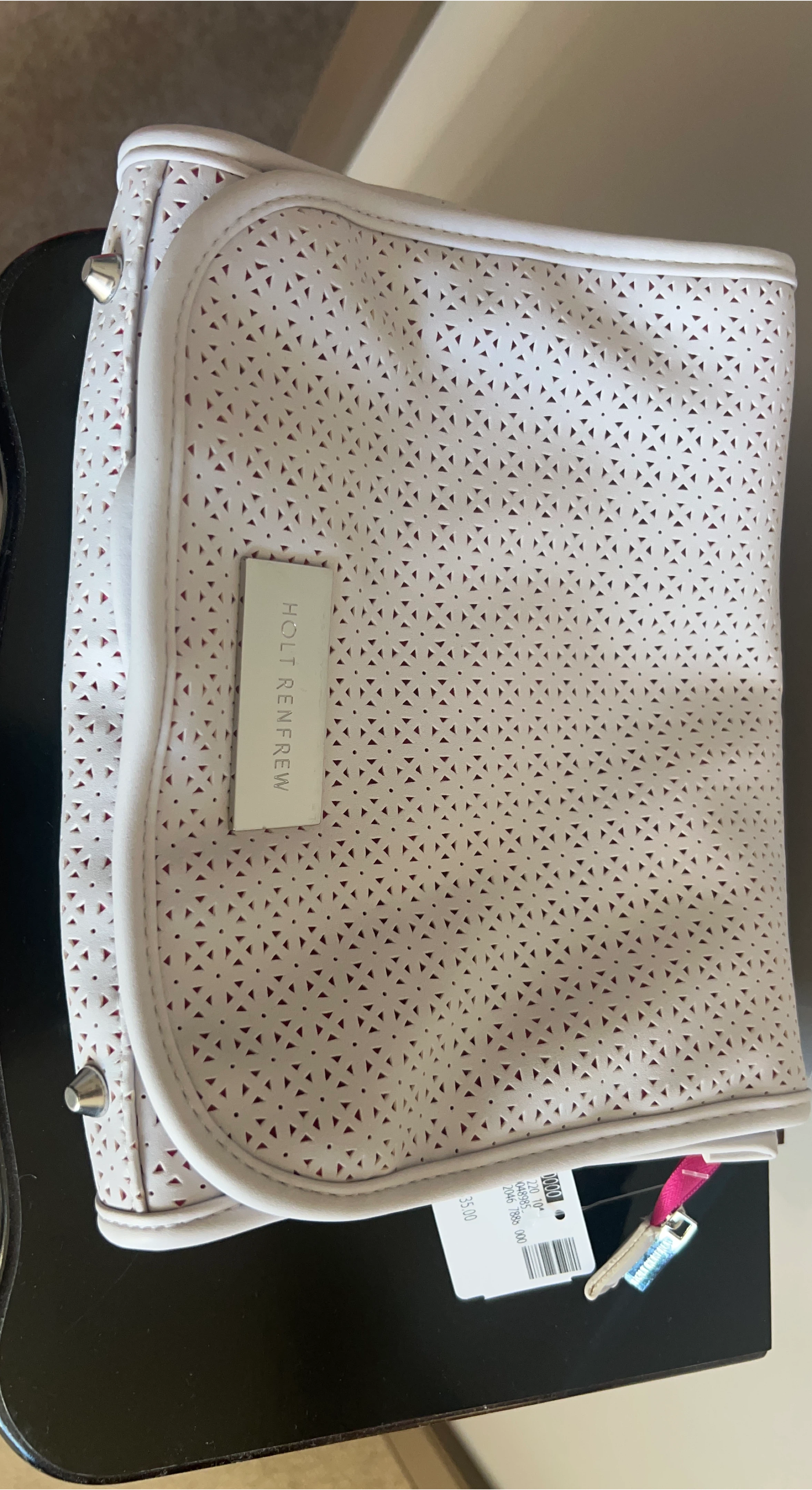 60Selling a brand new Holt Renfrew cosmetic bag! It's white with a fun, perforated design. Perfect for keeping your makeup organized when you're on the go. It still has the original tag attached!