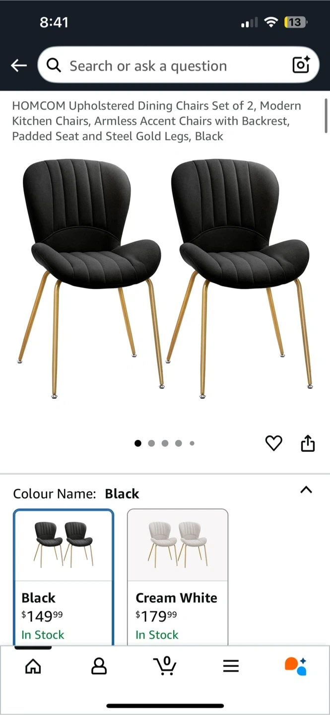 Selling a black upholstered dining chair. It features a modern design with a padded seat and steel gold legs. Chairs are brand new, never been used. One was removed from box and built for reference photos, I can disassemble for easy transport or build the second one to save you the time! Retails for $149.99 Asking $120 OBO