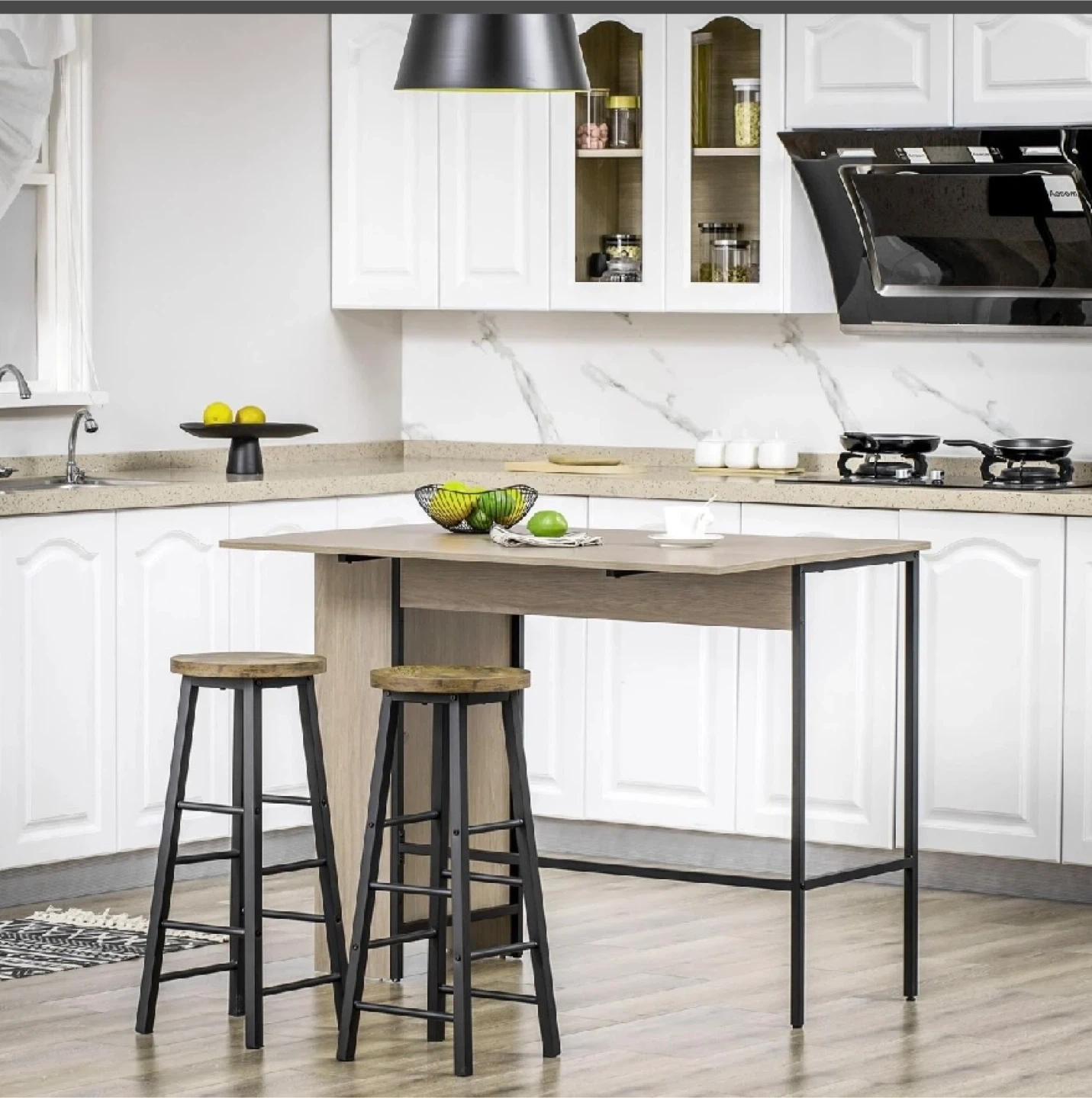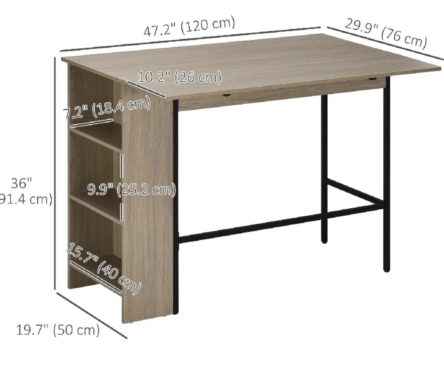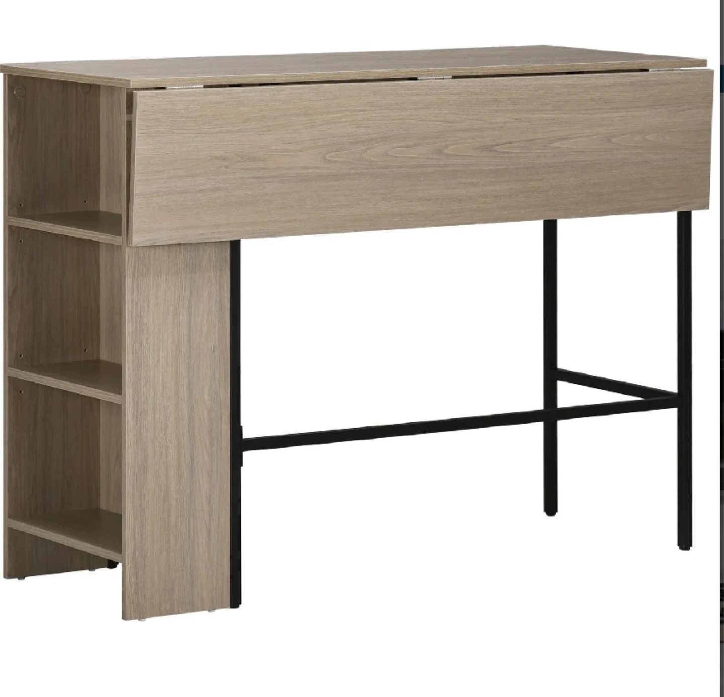 100Elevate your dining experience with this brand new HOMCOM counter height table, still sealed in its original box, featuring a convenient drop leaf design and a built-in storage shelf, perfect for compact spaces! The table measures 47.2 inches in length and 29.9 inches in width, providing ample space for dining or entertaining, and the drop leaf can be extended or folded down to save space as needed. A modern, neutral oak and black finish ensures it complements any decor, and the sturdy construction ensures lasting durability, and is ready for you to assemble in your kitchen or dining area. * Drop Leaf Design * Built-In Storage Shelf * Neutral oak and black finish * Sturdy construction
