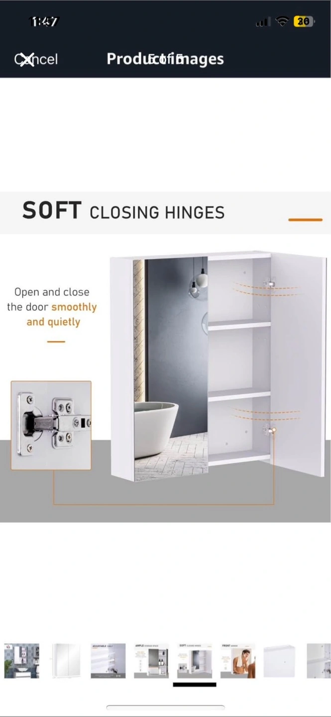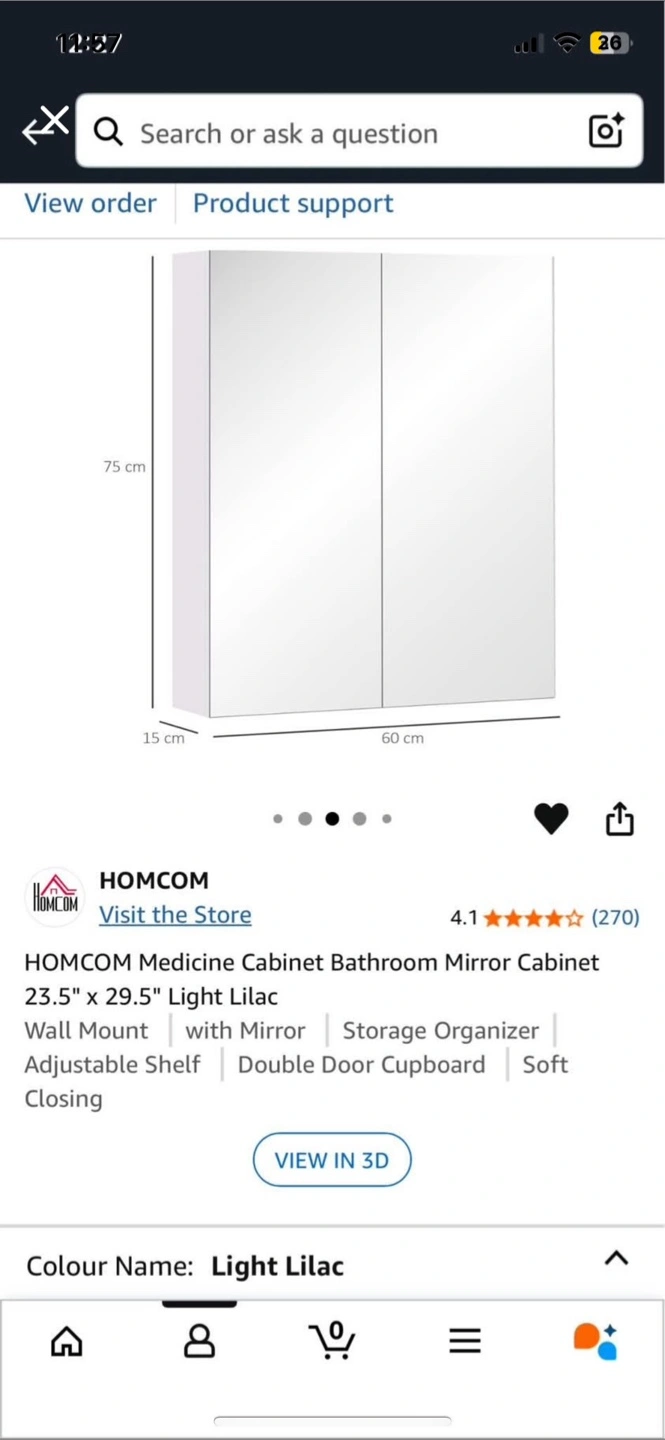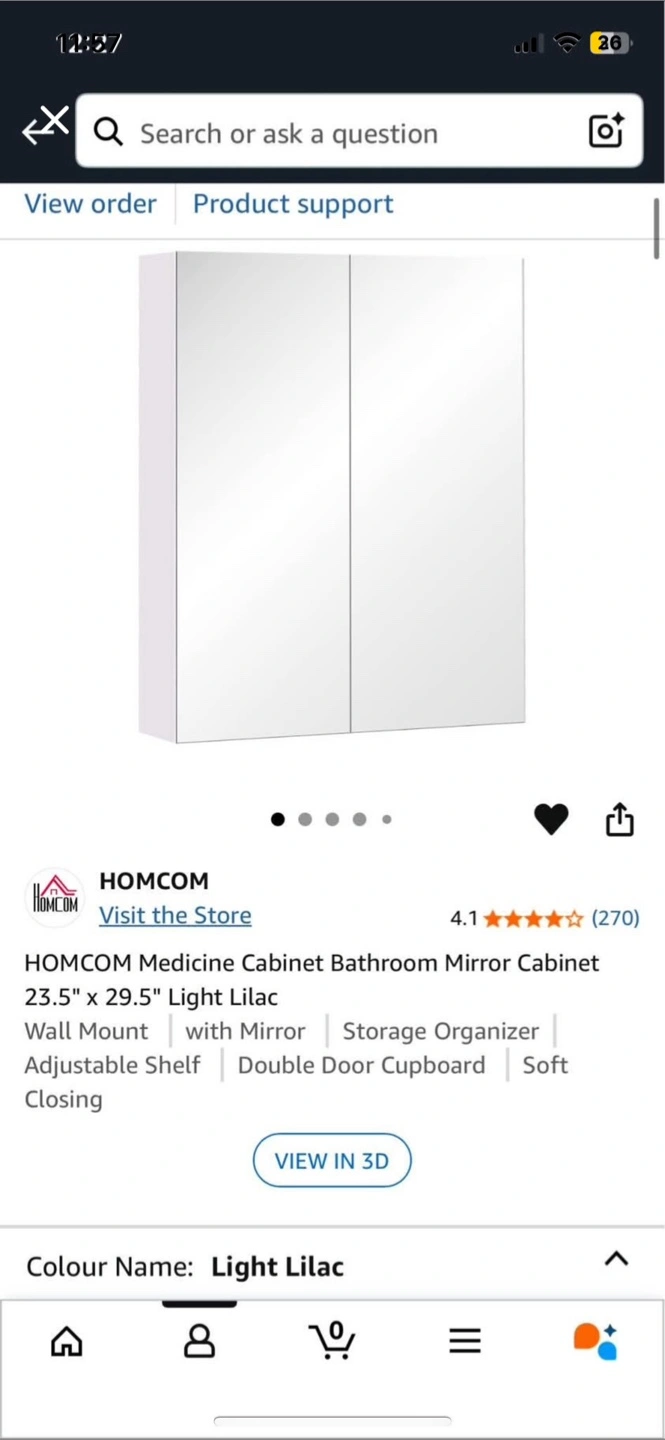 Selling a brand new HOMCOM medicine cabinet still in its original box! It's a light lilac colour and measures 23.5" x 29.5". Features include soft closing hinges, adjustable shelves and a double door cupboard. Perfect for adding some extra storage to your bathroom!