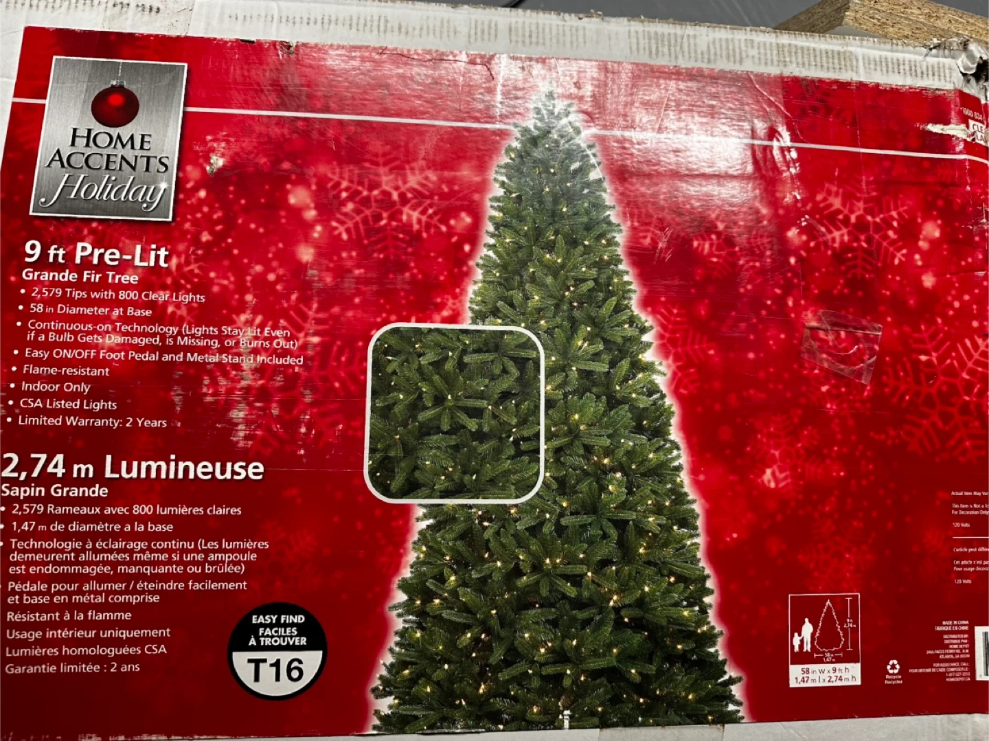 28Selling a 9ft pre-lit Grande Fir Tree. It comes with 2,579 tips with 800 clear lights. The tree is 58 inches in diameter at the base. It also has continuous-on technology, so the lights stay lit even if a bulb gets damaged, is missing, or burns out. Easy on/off foot pedal and metal stand included