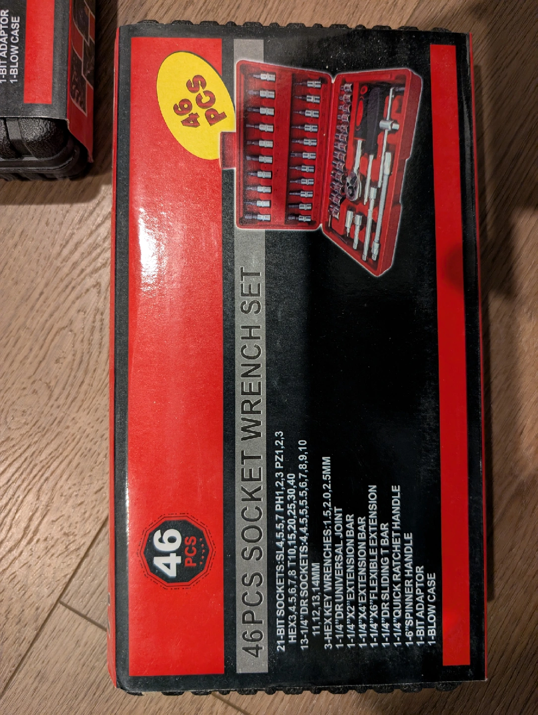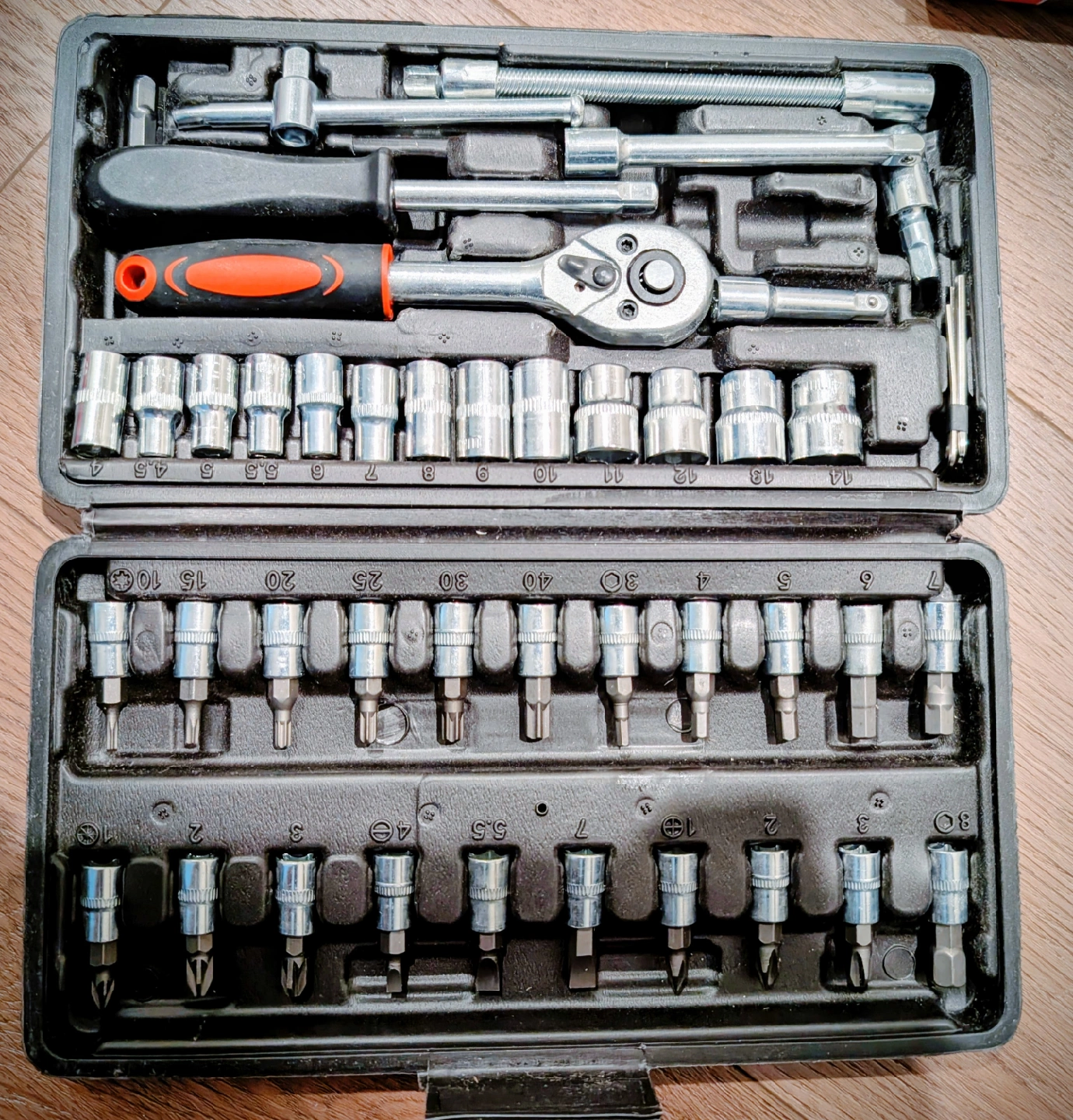 Selling a 46-piece socket wrench set! It comes in a bix with several bits and sockets and extension.