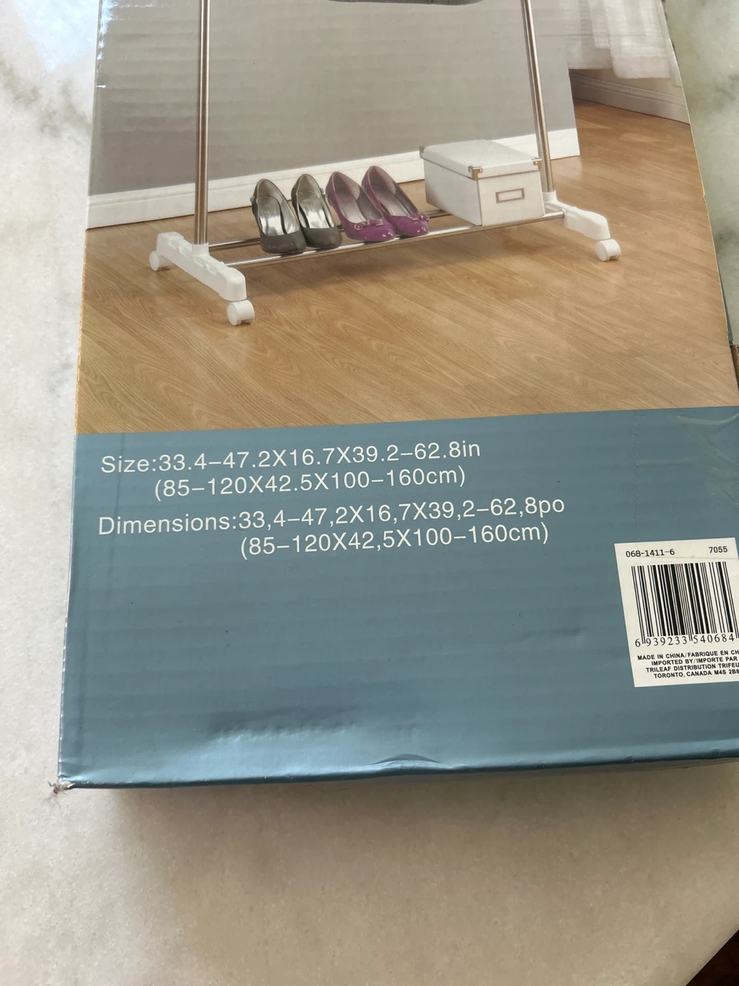 Selling a brand new Home Basics Garment Rack, still in its original packaging! It's perfect for adding extra hanging space. No tools are required for assembly, and it features a stainless steel frame. The dimensions are 33.4-47.2x16.7x39.2-62.8 inches (85-120x42.5x100-160cm).