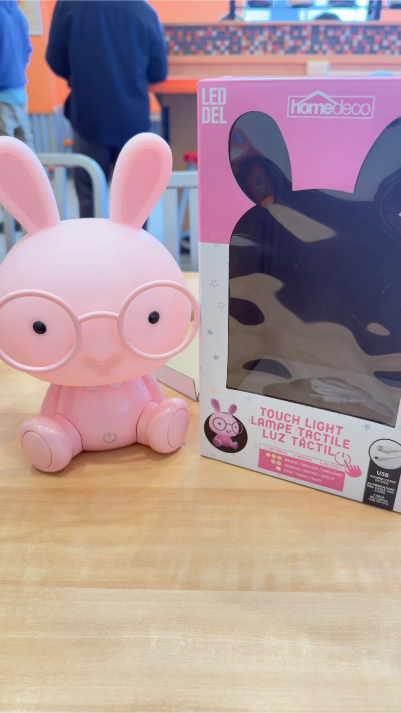 Selling a brand new Home Deco pink bunny touch light! It's super cute and perfect for a kid's room or as a night light. It comes in the original box and includes the USB cable for charging. The light is touch-sensitive with three brightness levels: low, medium, and bright. A fun and functional addition to any space!