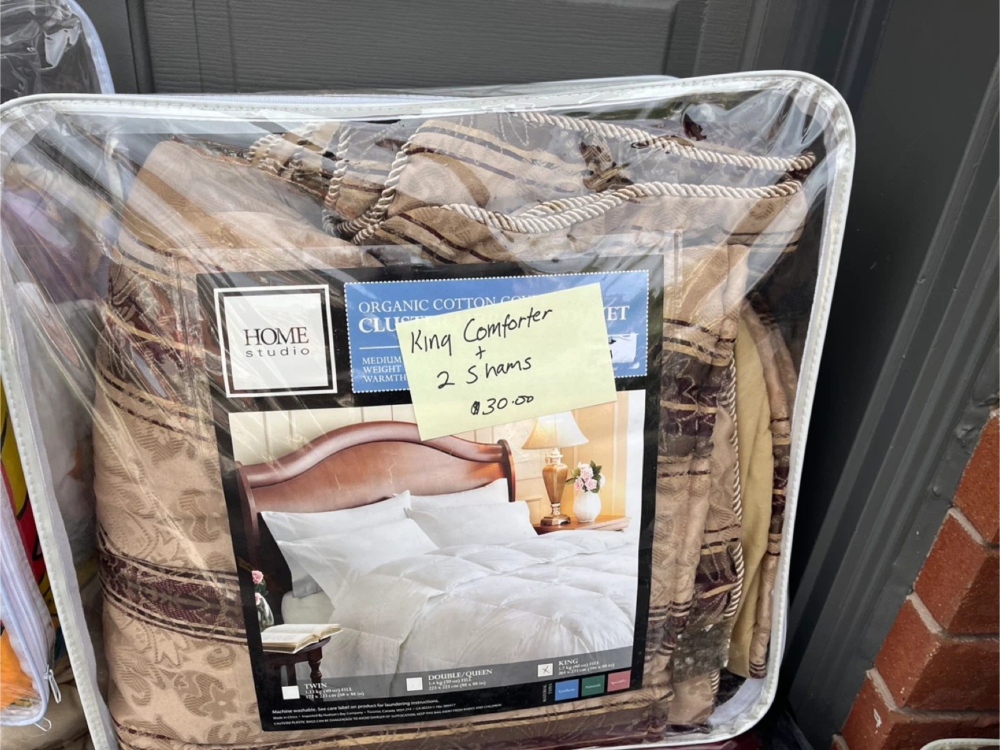 Selling a HOME studio organic cotton queen comforter set. It includes the comforter and two shams. It's a medium weight warmth comforter.