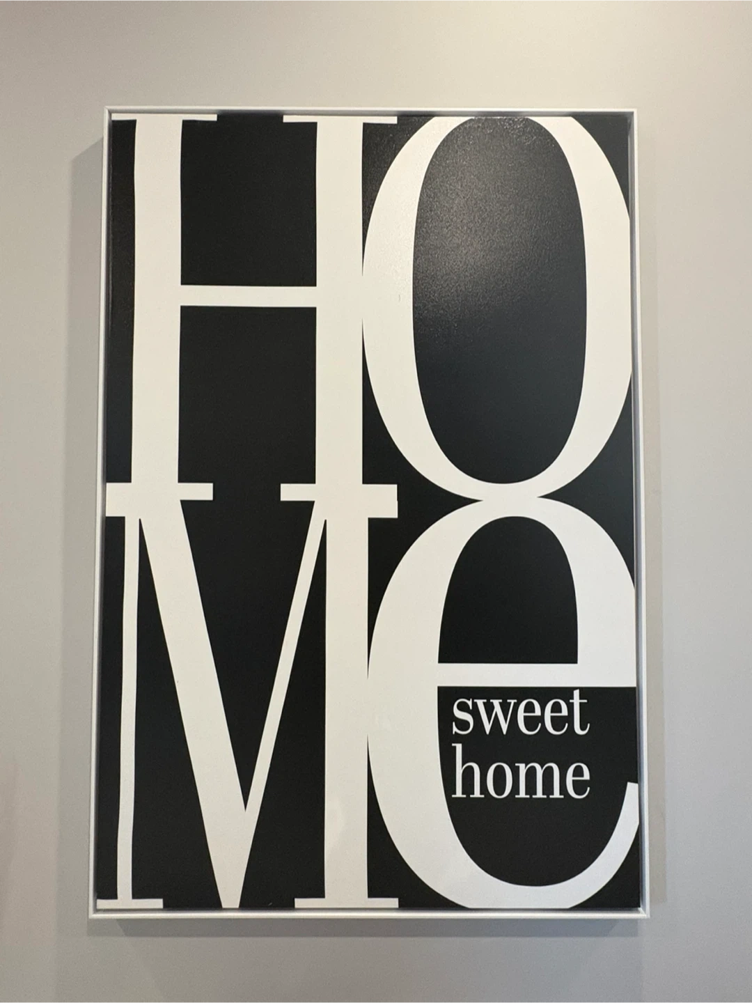A stylish piece of wall art with the words "HOME sweet home" in a modern, black and white design. Perfect for adding a touch of warmth to any room Approx 2 1/2’ x 3 1/2’ big