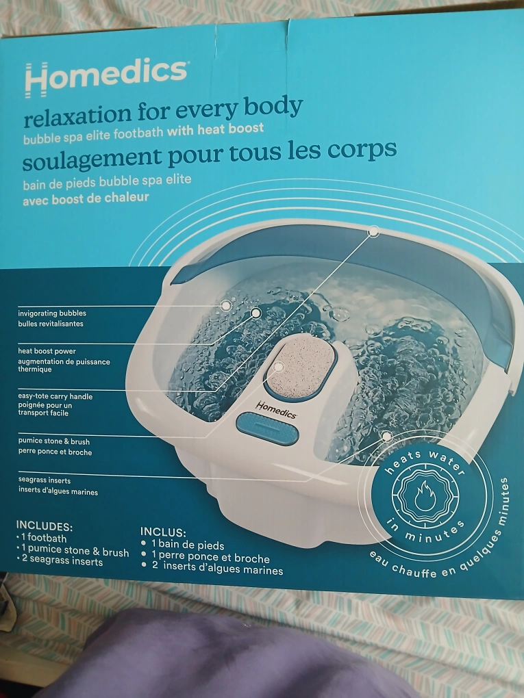 535Relaxation for every body. Includes footbath, pumice stone & brush, seagrass inserts. Heats water in minutes. Easy-carry handle. price is firm. pick up midland and Danforth or 401 bay street or stc mall or Kennedy stn