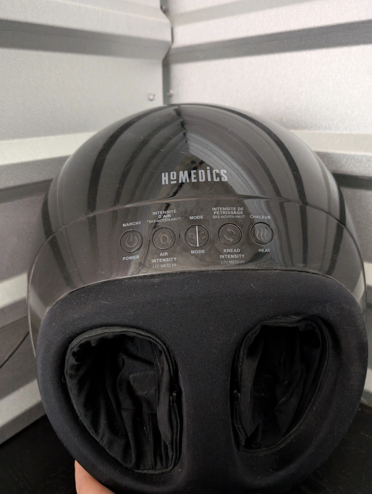 Foot massager with heat, air compression, and multiple massage modes. Black in colour.