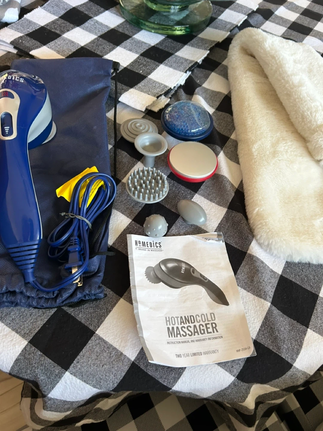 Selling a Homedics Hot and Cold Massager. It comes with a variety of attachments for different massage types and a carrying bag. Also includes the original instruction manual! Includes a hot water bottle with soft cover. Used prior to knee surgery last fall.