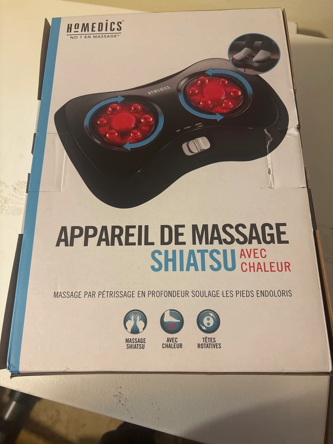 Selling a Homedics Shiatsu foot massager with heat. It's in excellent condition and comes with the original box. Enjoy a deep kneading massage to soothe tired feet with shiatsu massage and heat. It has rotating heads for a complete massage experience