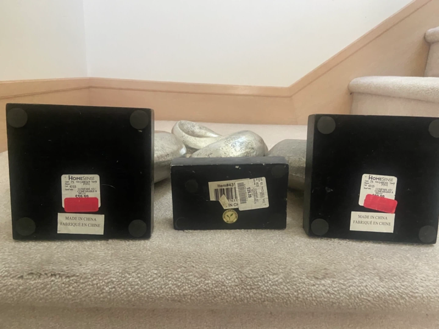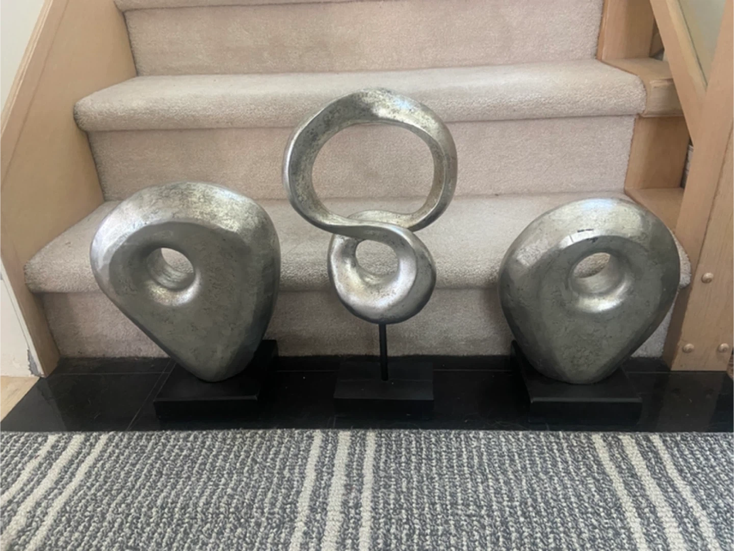 Selling a set of three abstract sculptures from HomeSense! These unique pieces add a modern touch to any room. Originally bought for $39.99 each, they're in great condition and ready to find a new home