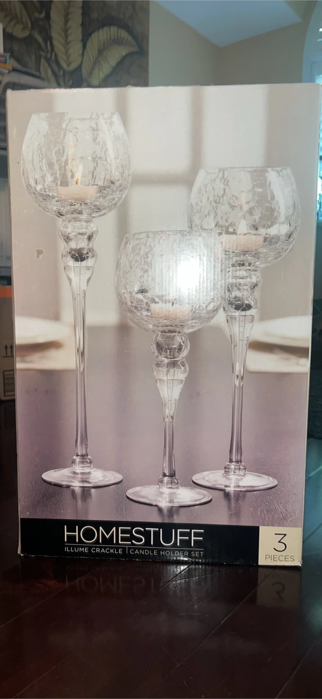 HOMESTUFF Illume Crackle Candle Holder Set with 3 pieces in the box