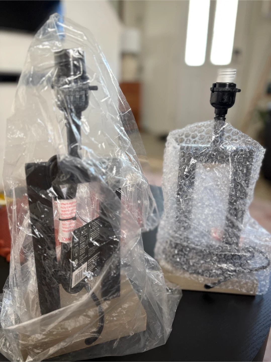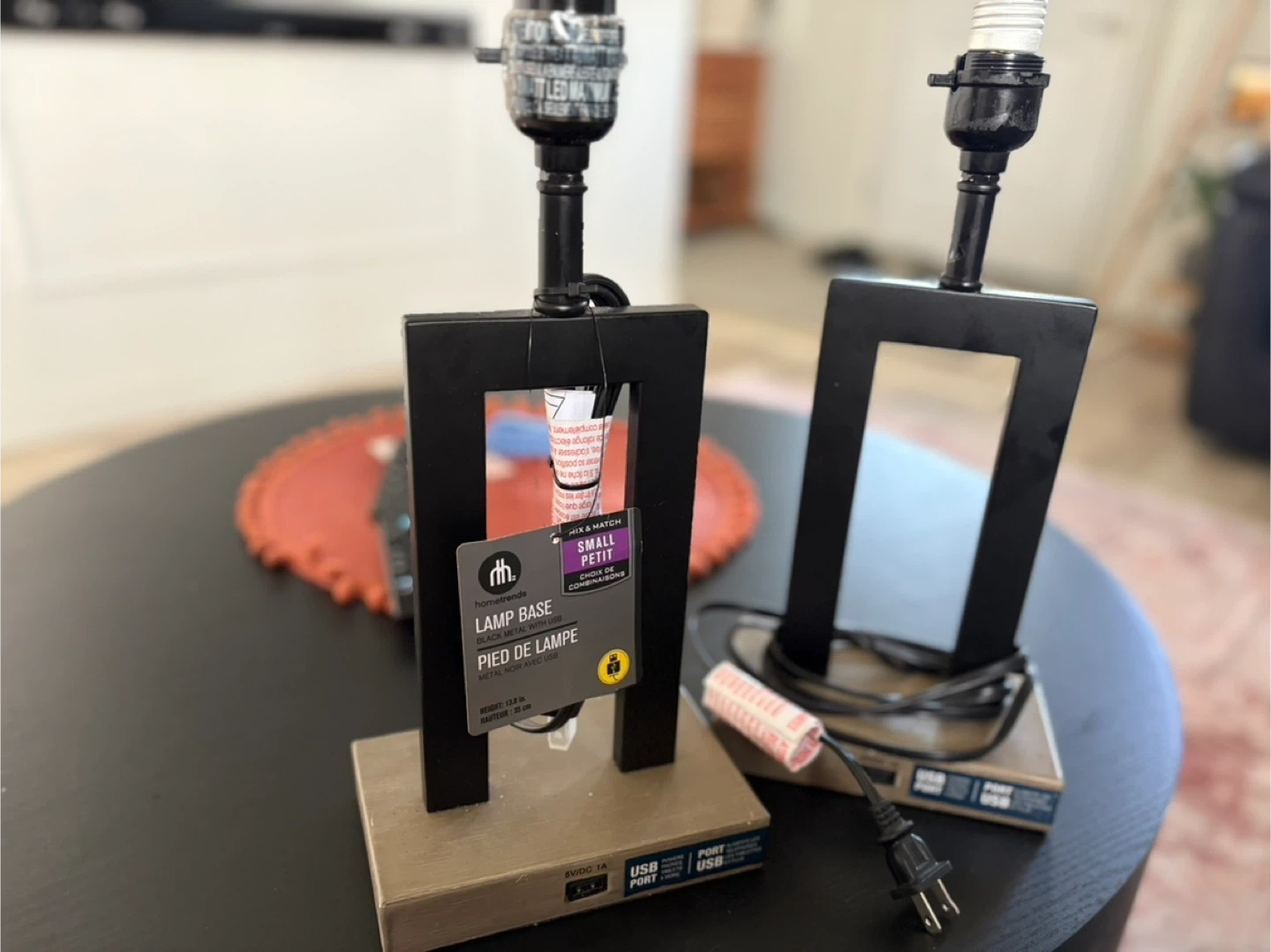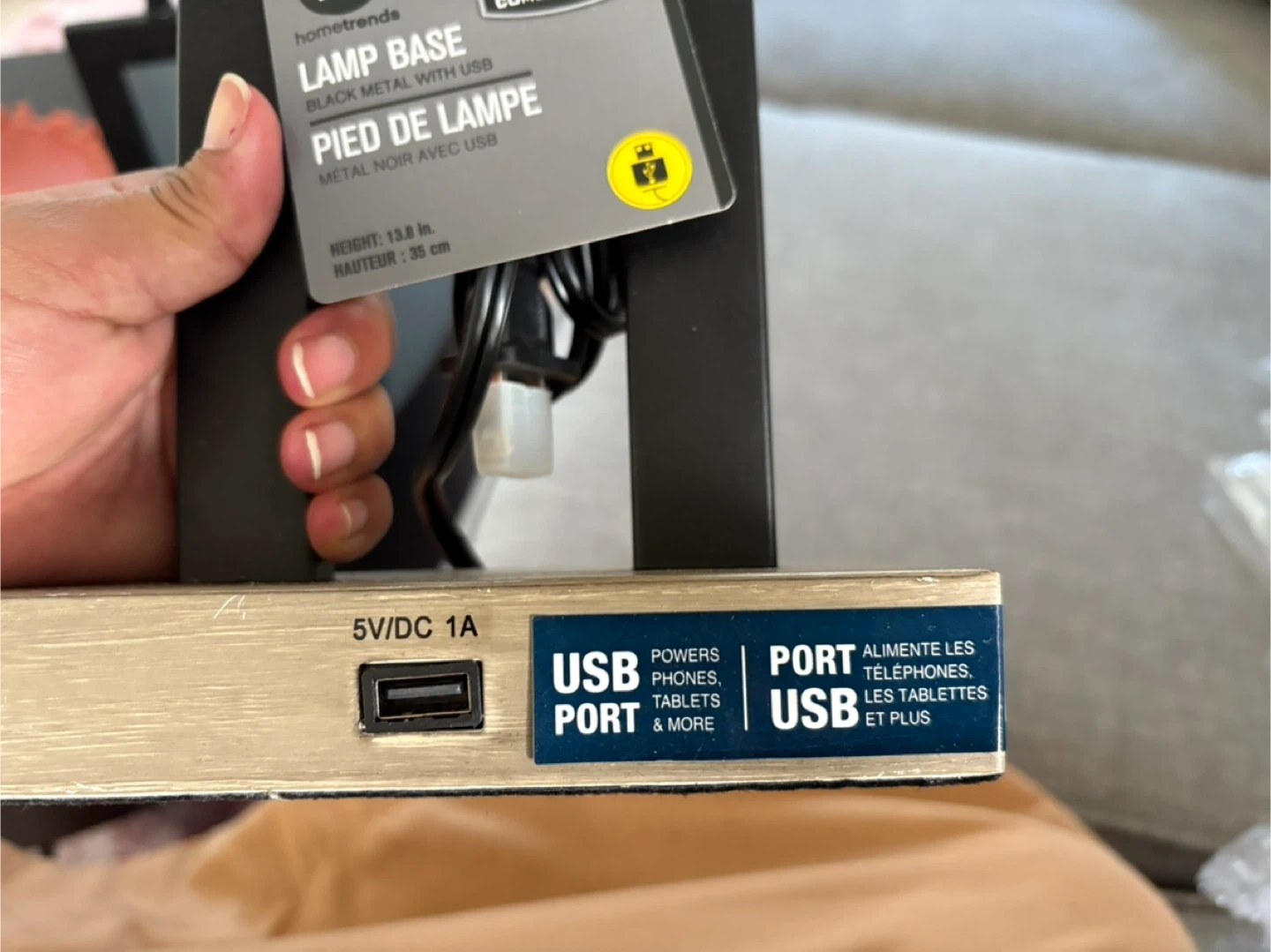 Selling these modern black metal bases feature a sleek rectangular design and include a built-in USB charging port—perfect for charging your phone or other devices right from your nightstand or desk. Condition: Never used Color: Black with brushed metal base Features: USB charging port Sturdy and modern design Ideal for bedrooms, offices, or living rooms