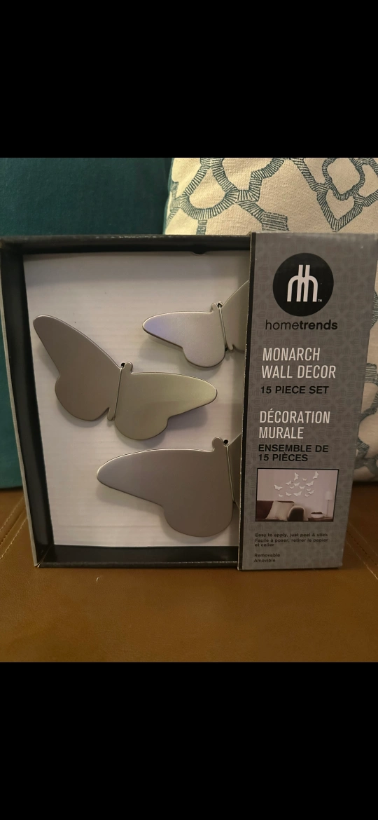 Add a touch of whimsy to your space with this hometrends Monarch Butterfly Wall Decor set! This 15-piece set is perfect for creating a unique and stylish wall display. Easy to apply, just peel and stick! Removable and reusable 3 boxes, 10$ each or 25$ for all 3.