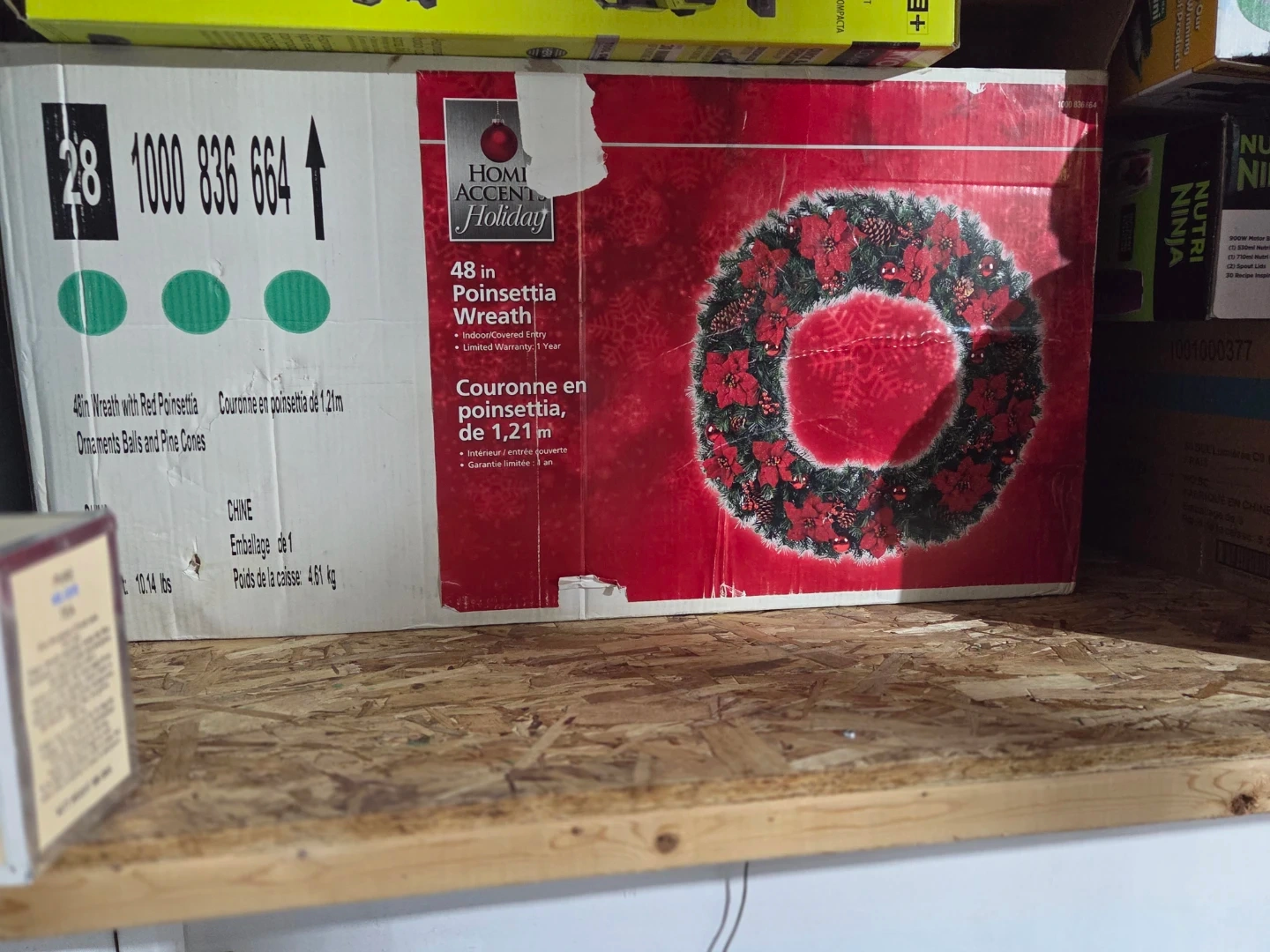 10Selling a 48-inch Poinsettia Wreath from HOMI Accent Holiday! It's in its original packaging. This wreath features: - Indoor/Covered Entry design - Limited 1-year warranty - Includes ornaments, balls, and pine cones