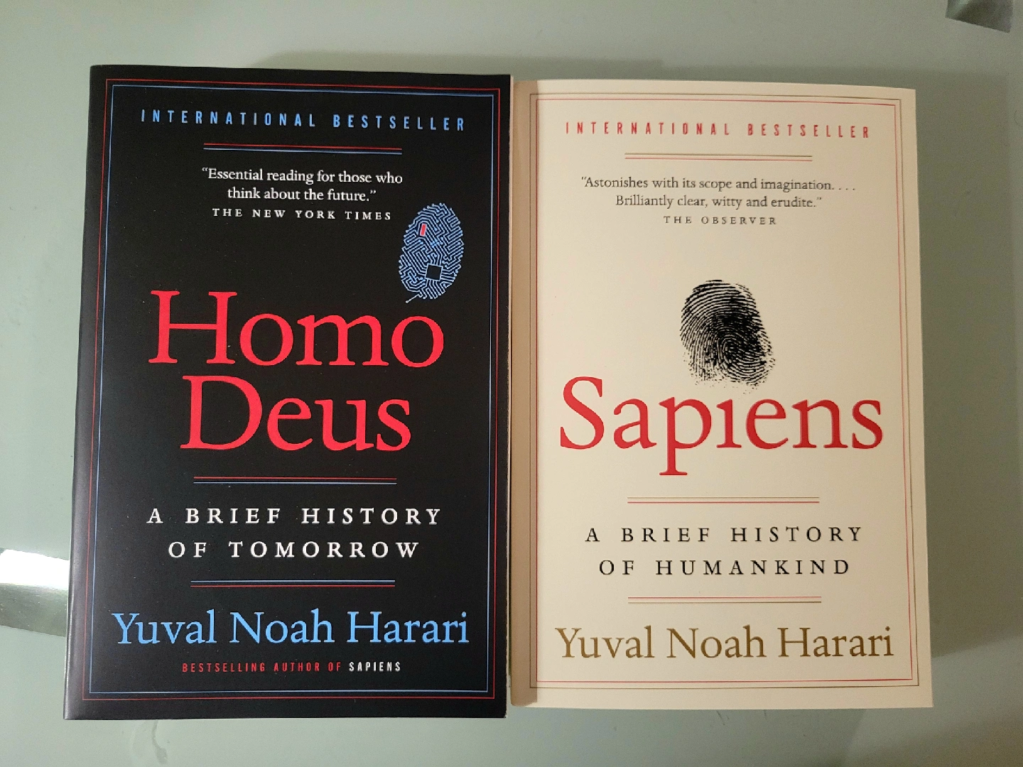Selling a set of two books by Yuval Noah Harari, Homo Deus and Sapiens - international bestsellers that explore the history and future of humankind.